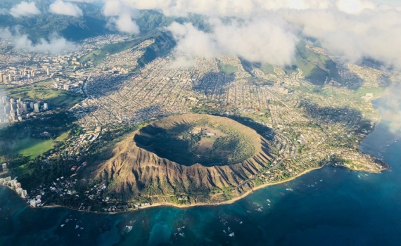 Diamond Head, Mỹ: Nằm trên đảo Oahu, Hawaii, Mỹ, núi lửa Diamond Head có hình chiếc đĩa và cao 232 m. Diamond Head hình thành cách đây hơn 300.000 năm. Ngày nay, con đường mòn chạy qua khu vực này được những người đi bộ đường dài yêu thích bởi tầm nhìn tuyệt đẹp ra khung cảnh ven biển. Ảnh: ChaseO.