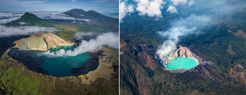 Ijen, Indonesia: Ijen là núi lửa đang hoạt động nổi tiếng ở Đông Java, Indonesia. Cao gần 2.800 m so với mặt nước biển, núi lửa Ijen có diện tích rộng lớn. Đặc biệt, hồ nước lưu huỳnh màu ngọc lam ở miệng núi lửa này có tính axit cao nhất thế giới. Sở hữu khung cảnh vừa nên thơ, vừa hùng vĩ nhưng Ijen cũng chứa nhiều bí ẩn với cả du khách và người dân bản địa. Ảnh: Shutterstock.