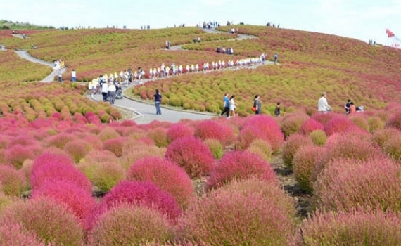 Du khách bốn phương đều mê mẩn ngọn đồi “đổi màu” theo các mùa với những loại hoa kết hợp với cây Kochia, đem lại những sắc thái đẹp tuyệt vời ở Ibaraki, Nhật Bản.