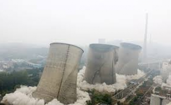 Ba tòa tháp ở nhà máy nhiệt điện Trung Quốc bị đánh sập trong tích tắc