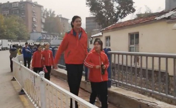 Thật khó để tin Zhang mới chỉ là học sinh lớp sáu khi cô bé 11 tuổi cao tới 6 feet 7 inches (2,1 m)
