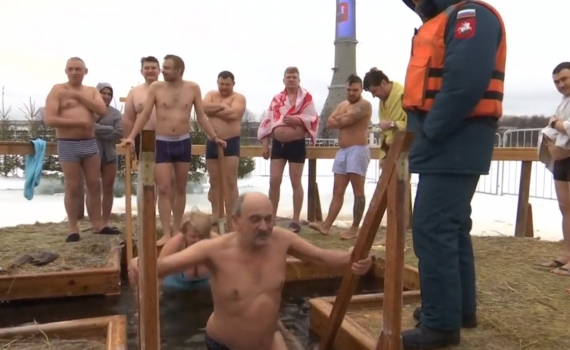 Hơn 250.000 người ngâm mình trong làn nước lạnh giá của sông, hồ quanh Moskva nhân ngày Lễ Hiển Linh của Chính thống giáo.