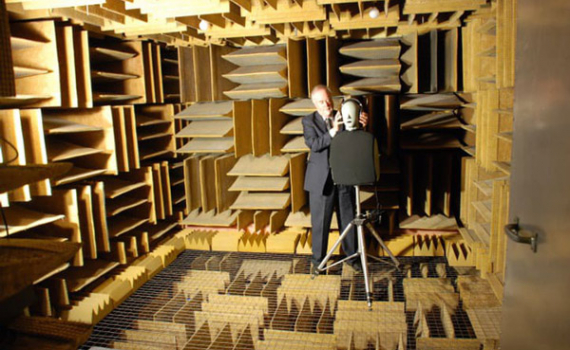Với tên gọi "căn phòng không tiếng vọng", đây là một gian phòng nhỏ, mỗi chiều chỉ dài 6,36 m. Nó được thiết kế để yên tĩnh hết mức có thể, cho phép các kỹ sư chỉnh thiết bị âm thanh tới mức hoàn hảo. Căn phòng gồm 6 lớp bê tông, mỗi lớp dày 30 cm, giúp chặn hết mọi âm thanh từ thế giới bên ngoài. Tường, nền và trần gian phòng bao phủ những tấm hình nêm lớn bằng sợi thủy tinh xốp để triệt tiêu mọi tiếng vang.