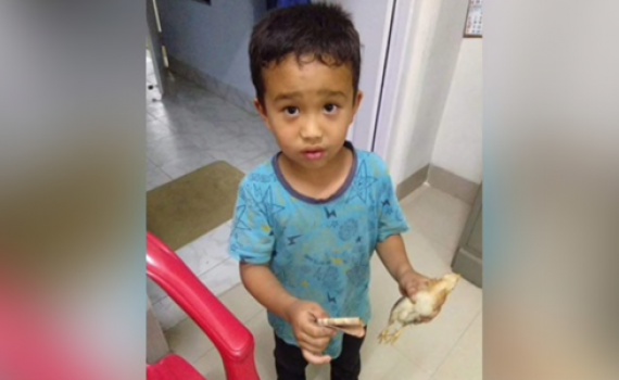 Derek C Lalchhanhima, 6 tuổi, sống ở thị trấn Sairang, bang Mizoram, vô tình đạp xe cán phải gà nhà hàng xóm. Cậu bé tức tốc ôm gà chạy về nhà, cầu xin bố mẹ hãy mang nó đi bệnh viện mà không biết con vật đã chết.