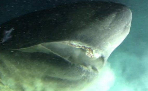 Giật mình cá mập 6 mang khổng lồ bơi sát tàu ngầm nghiên cứu