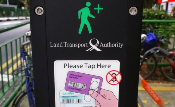 Người già và người khuyết tật khi tham gia giao thông ở Singapore chỉ cần quẹt thẻ từ vào cột đèn. Ngay lập tức, hệ thống đèn bật sáng, xe cộ lưu thông sẽ nhường đường cho họ.