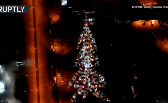 Giống như một số vùng khác, thành phố Stavropol phía Tây Nam nước Nga đang trải qua một mùa đông với nền nhiệt cao hơn thường lệ. Bởi vậy, việc xếp hình cây thông bằng ô tô được xem là cách người dân sáng tạo cho dịp nghỉ lễ quan trọng nhất trong năm này.