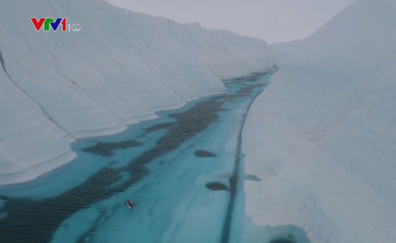 Vận động viên bơi lội người Anh Lewis Gordon Pugh thực hiện hành trình bơi đường dài ở vùng biển phía Đông của Nam Cực dọc theo dòng sông mới hình thành do băng tan.