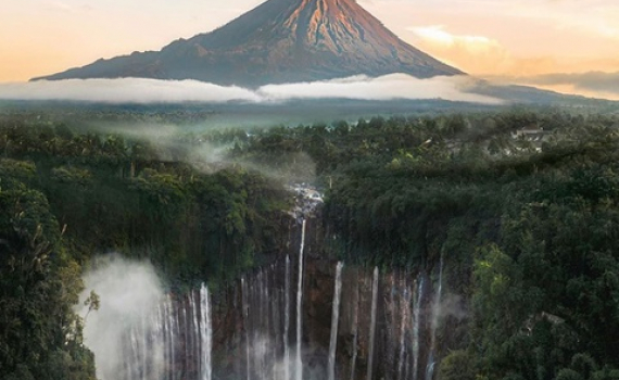 Thác Tumpak Sewu ẩn mình bên dưới núi lửa đang hoạt động Semeru ở miền Đông Java (Indonesia) mang vẻ đẹp đầy huyền bí của nghìn dòng nước ào ào chảy giữa rừng núi hoang vu.