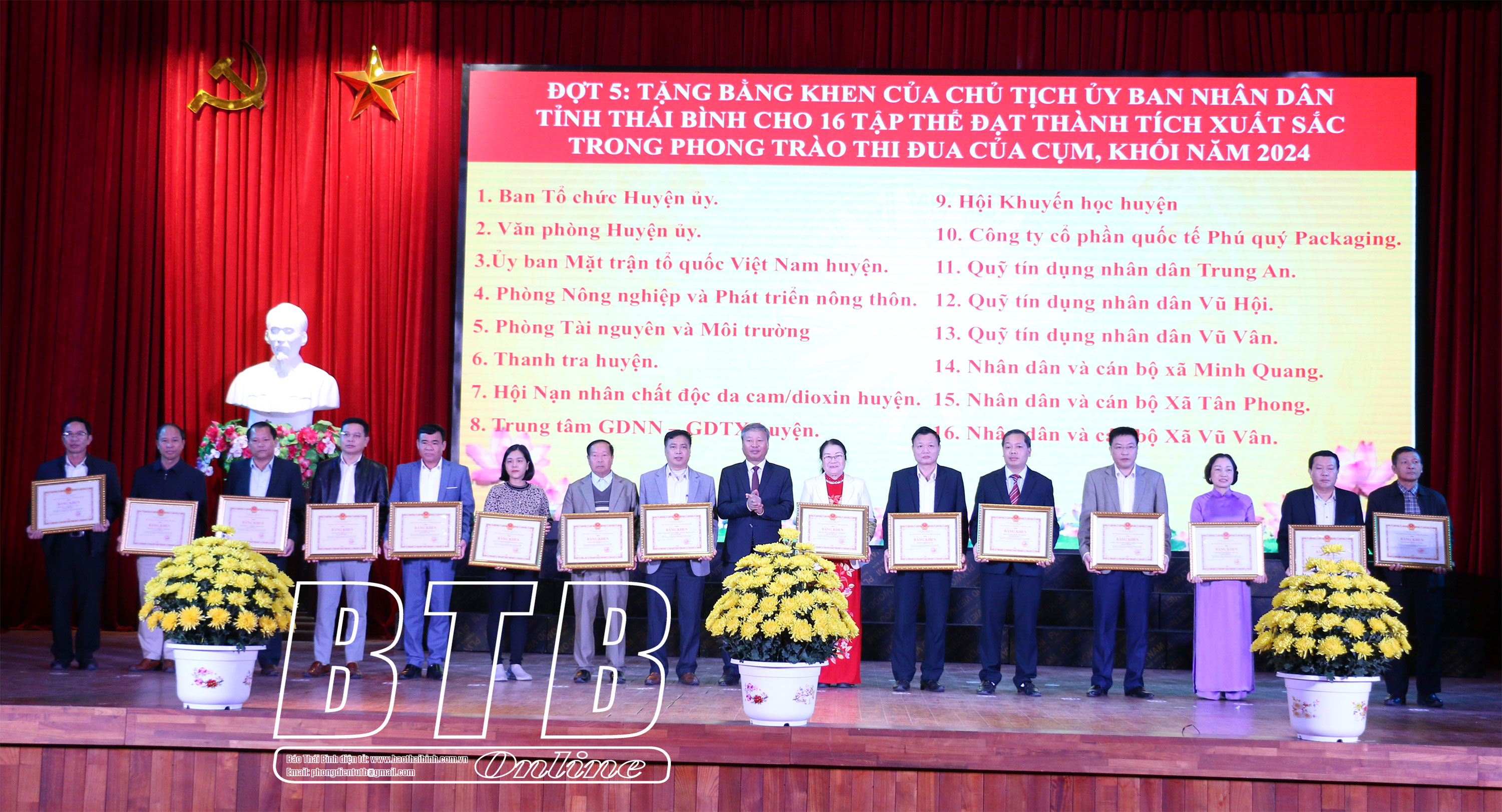 Nhân dịp này, 102 tập thể, cá nhân có thành tích xuất sắc trong các phong trào thi đua năm 2024 được biểu dương, khen thưởng; trong đó có 2 tập thể và 1 cá nhân được tặng bằng khen của Thủ tướng Chính phủ.