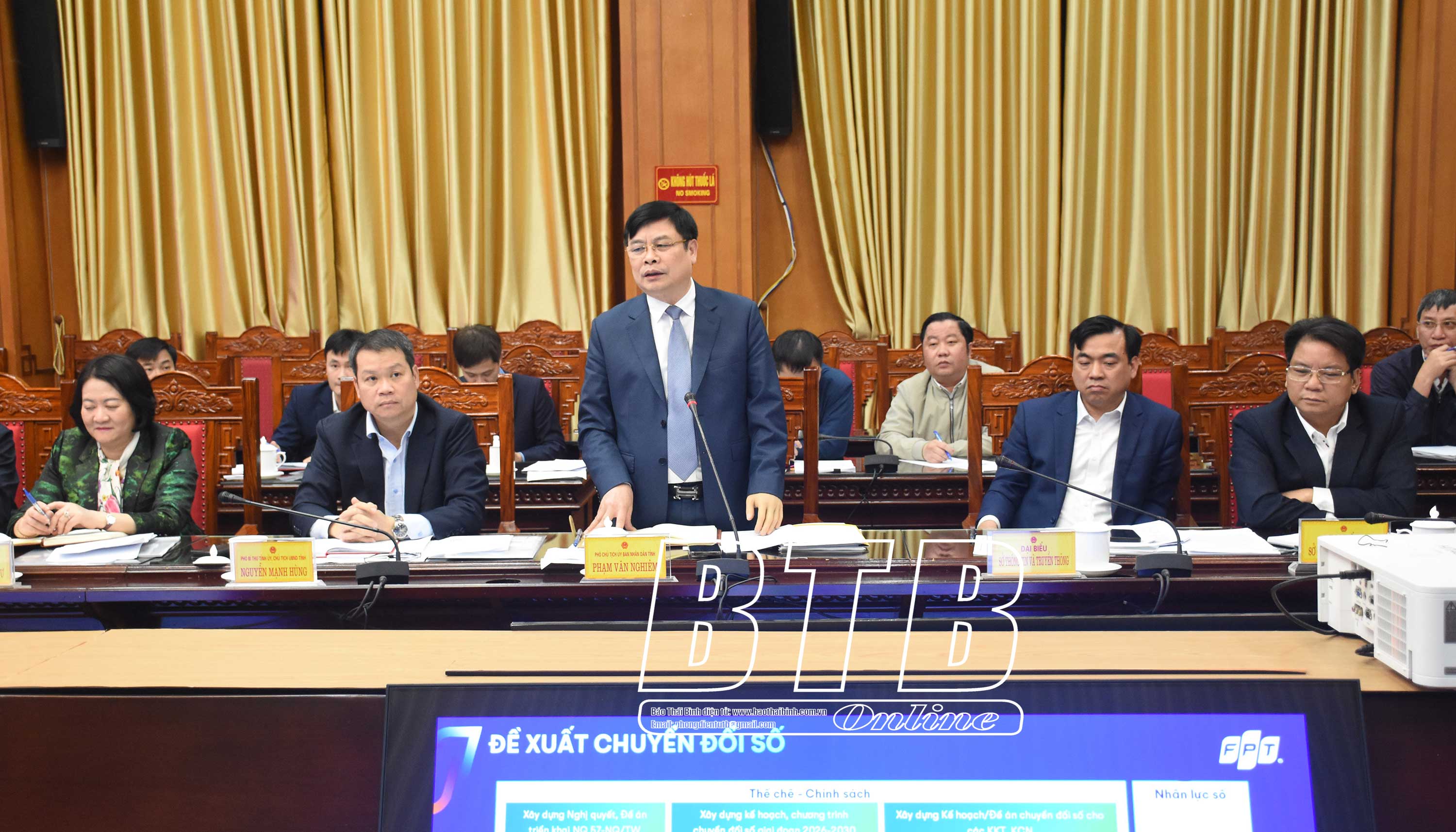 Đồng chí Phạm Văn Nghiêm, Tỉnh ủy viên, Phó Chủ tịch UBND tỉnh phát biểu tại buổi làm việc.