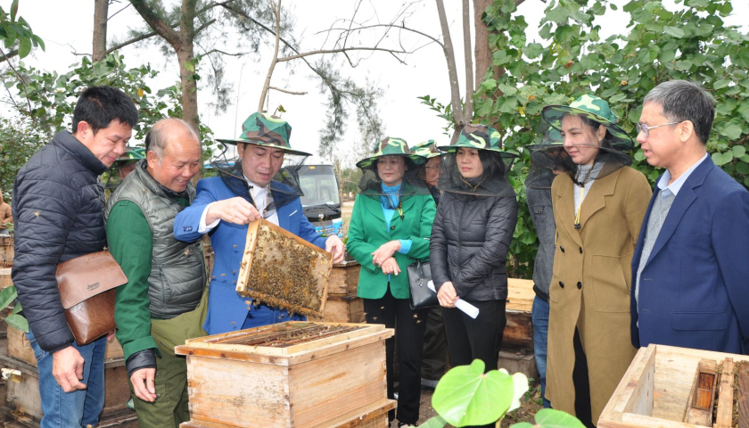 Mô hình nuôi ong ngoại trong thùng kế và khai thác mật ong tại xã Thái Đô (Thái Thụy).