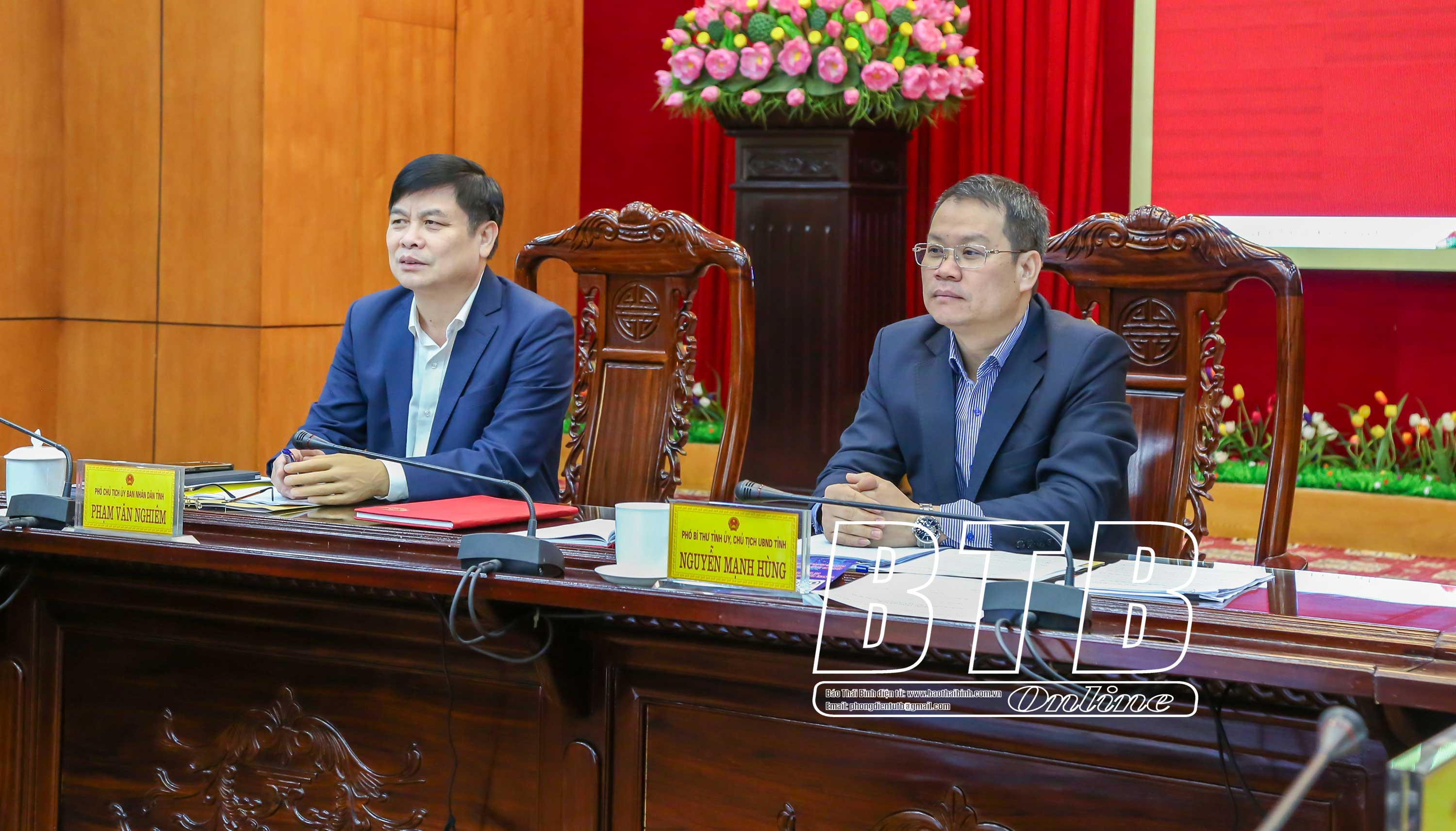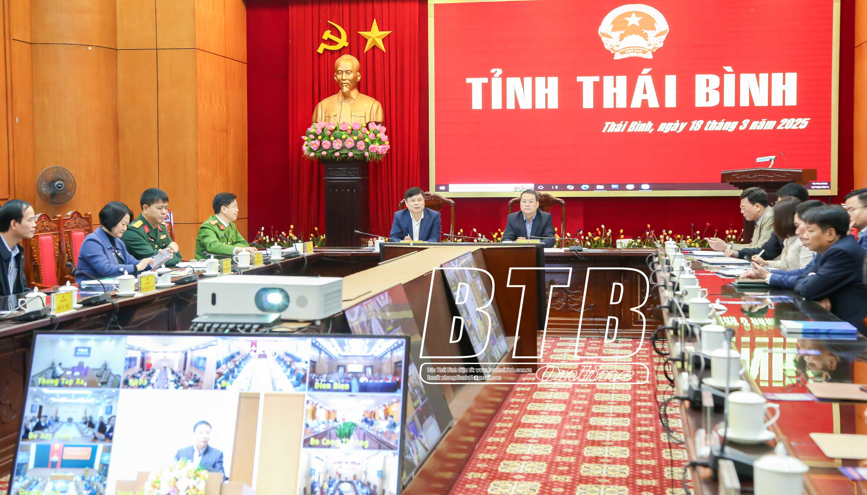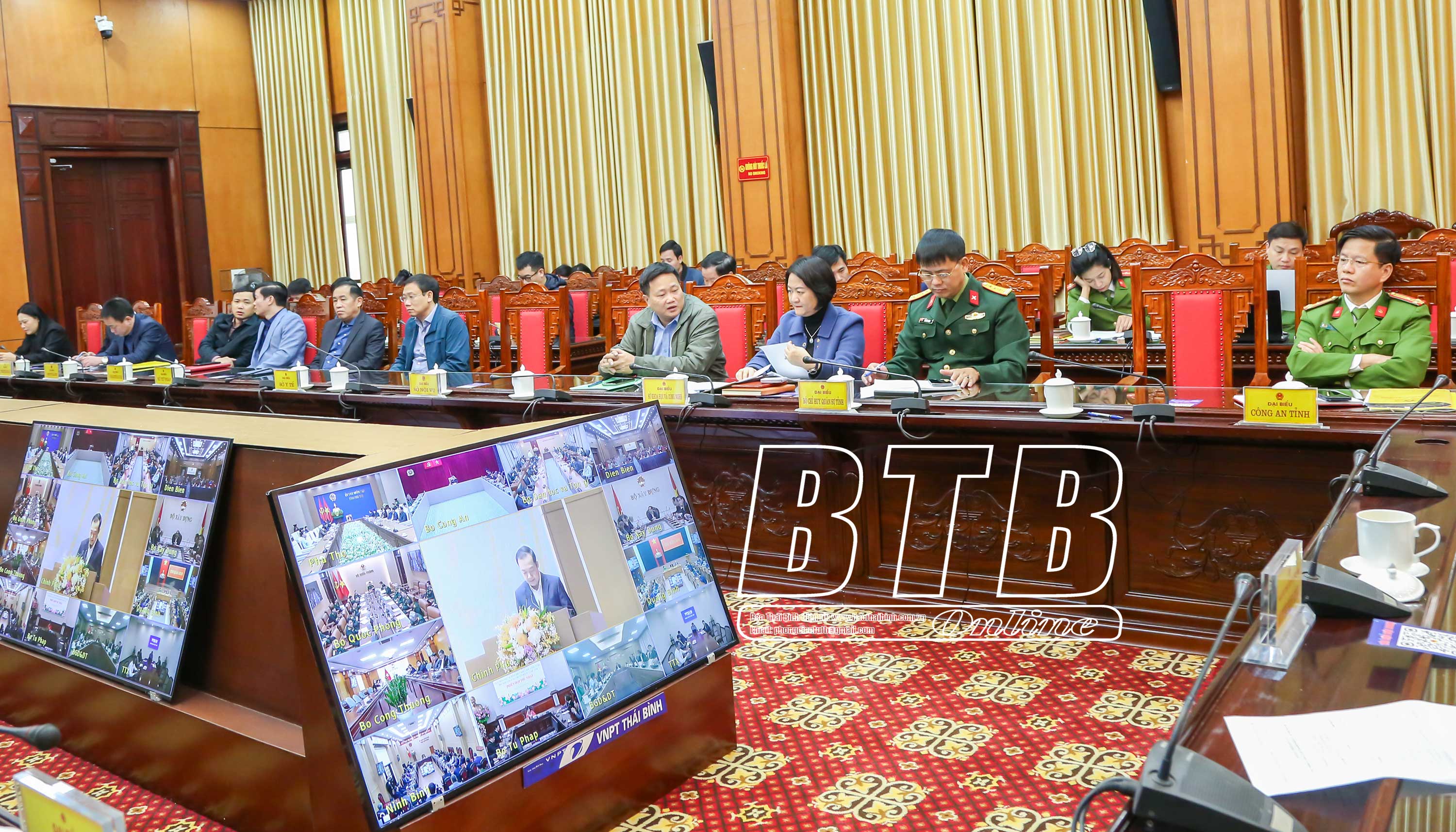 Các đồng chí lãnh đạo tỉnh dự phiên họp tại điểm cầu Thái Bình.