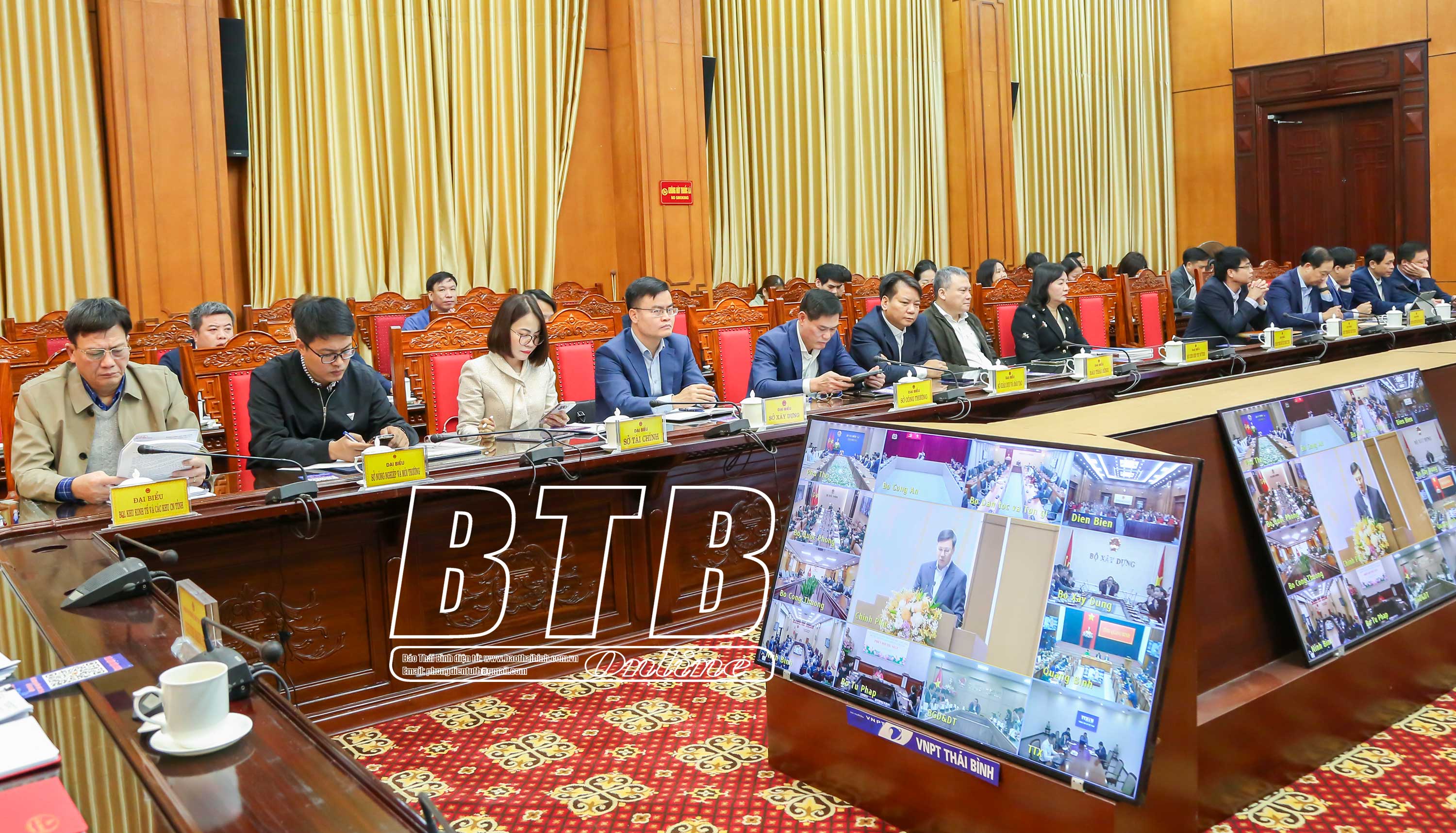 Các đồng chí lãnh đạo tỉnh và đại biểu dự phiên họp tại điểm cầu Thái Bình.