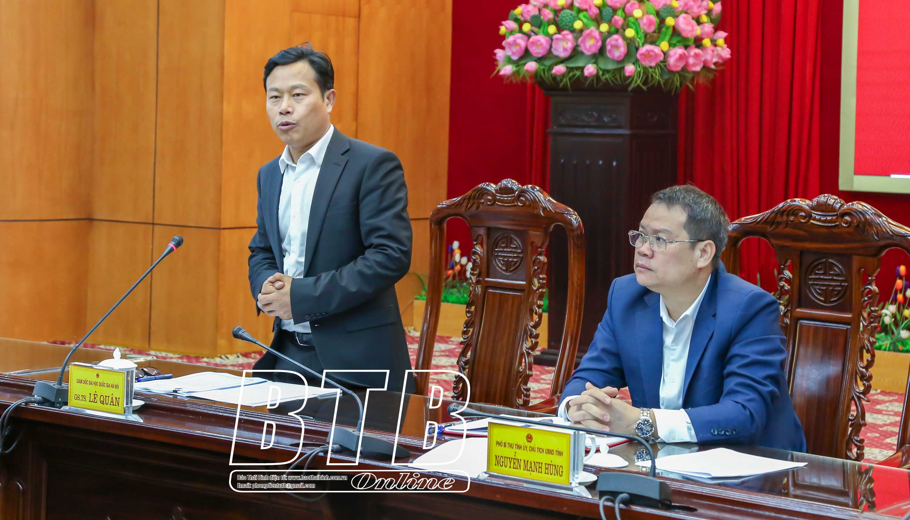 Tiếp và làm việc với đoàn có đồng chí Nguyễn Mạnh Hùng, Phó Bí thư Tỉnh ủy, Chủ tịch UBND tỉnh; các đồng chí Ủy viên Ban Thường vụ Tỉnh ủy; lãnh đạo UBND tỉnh; lãnh đạo các sở, ngành, địa phương và doanh nghiệp liên quan.