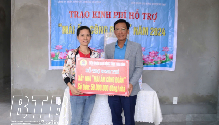 Công đoàn huyện Vũ Thư trao kinh phí hỗ trợ đoàn viên xây nhà