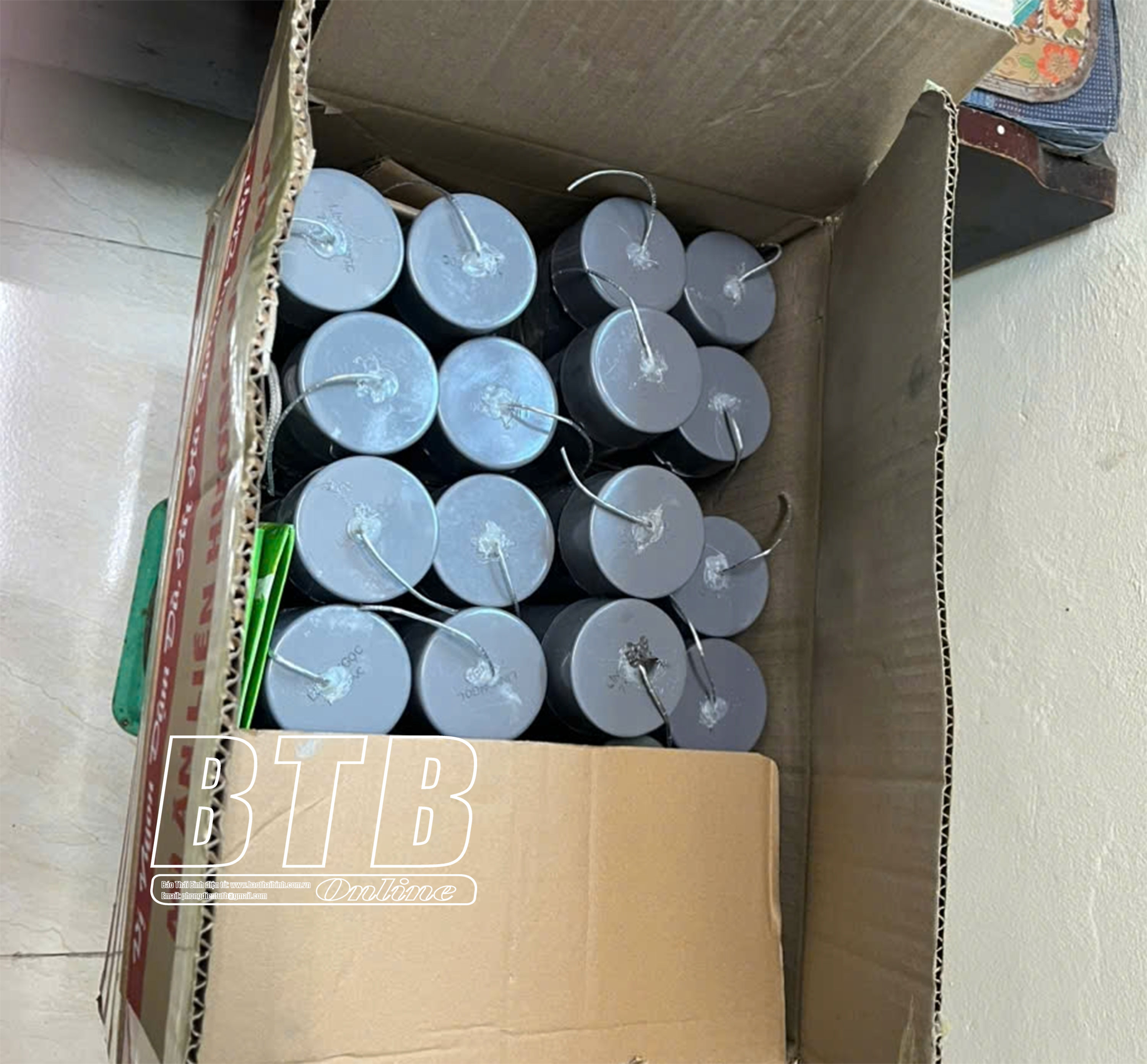 Trước đó, khoảng 9 giờ 50 phút ngày 14/12, tại khu vực trạm bơm nước thuộc thôn Đồng Vân, xã Vũ Lễ, qua tuần tra kiểm soát, tổ công tác Công an huyện Kiến Xương phối hợp với Công an xã Vũ Lễ phát hiện Nguyễn Việt Hùng đang có hành vi mua bán pháo trái phép. Tổ công tác đã kiểm tra, thu giữ 21 quả pháo khối hình trụ tròn trọng lượng 11,5kg.