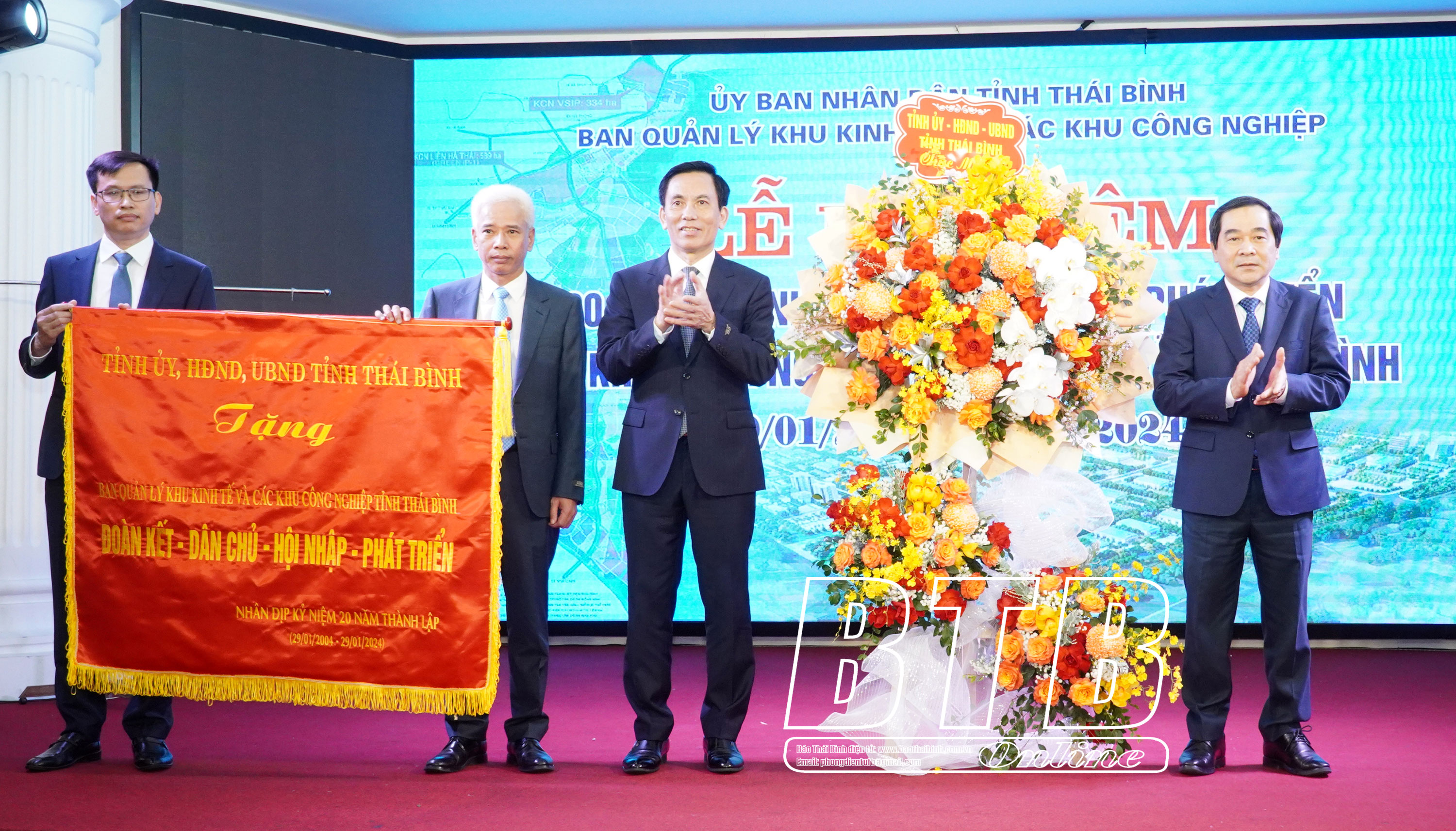 Phát biểu tại lễ kỷ niệm, đồng chí Ngô Đông Hải, Ủy viên Ban Chấp hành Trung ương Đảng, Bí thư Tỉnh ủy ghi nhận và biểu dương các thế hệ cán bộ, nhân viên Ban Quản lý Khu kinh tế và các khu công nghiệp tỉnh đã nỗ lực hoàn thành xuất sắc nhiệm vụ được giao và đạt được những kết quả đáng tự hào trong suốt 20 năm thành lập và phát triển.