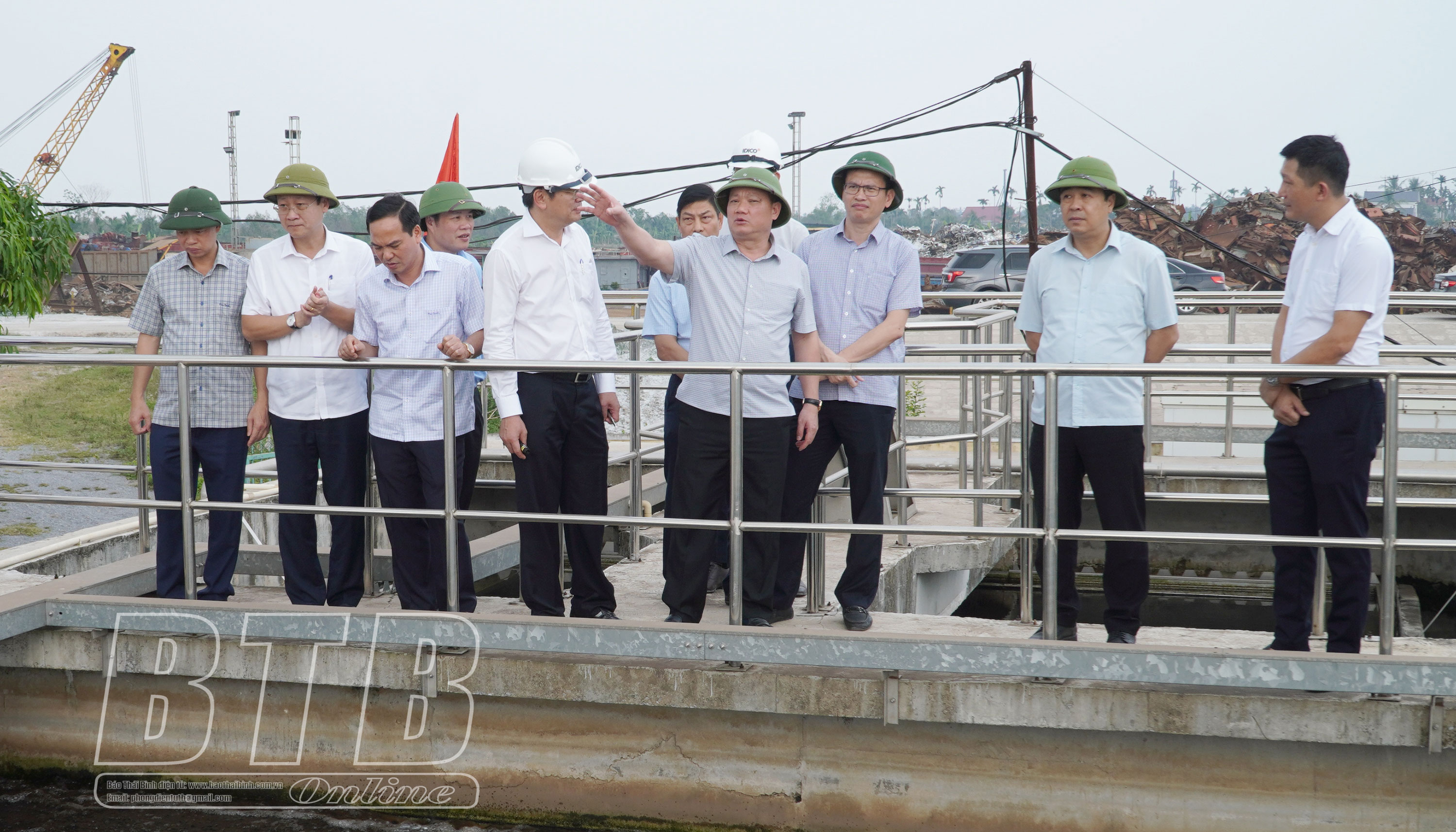 Các đồng chí lãnh đạo tỉnh kiểm tra chất lượng công trình nhà máy xử lý nước thải tập trung của KCN Cầu Nghìn với công suất 5.200m3/ngày, đêm.