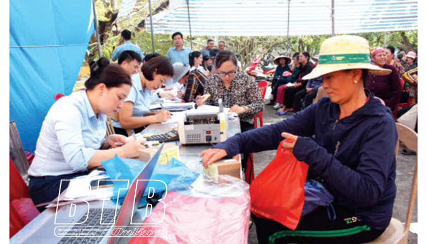 Người dân thôn Lộc Trung, xã Nam Hưng (Tiền Hải) nhận tiền đền bù giải phóng mặt bằng.
