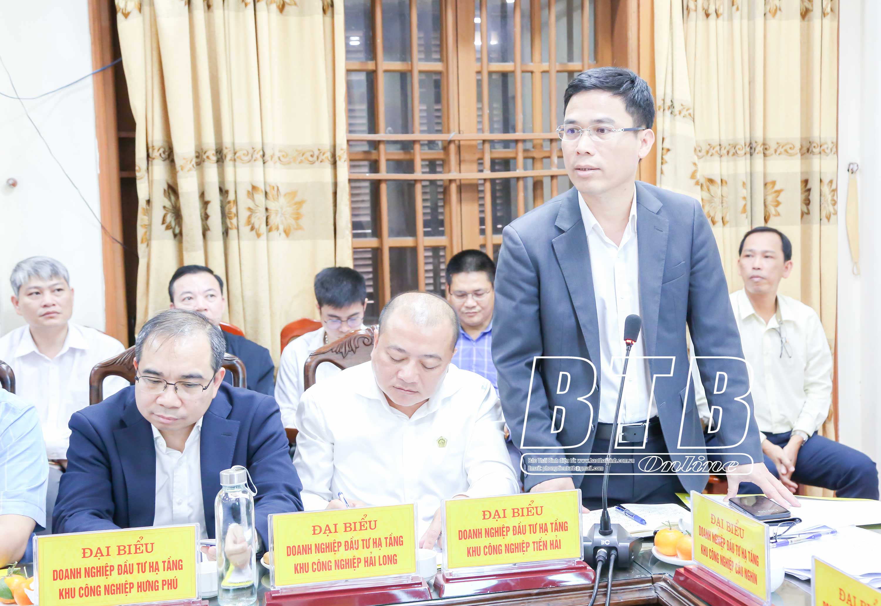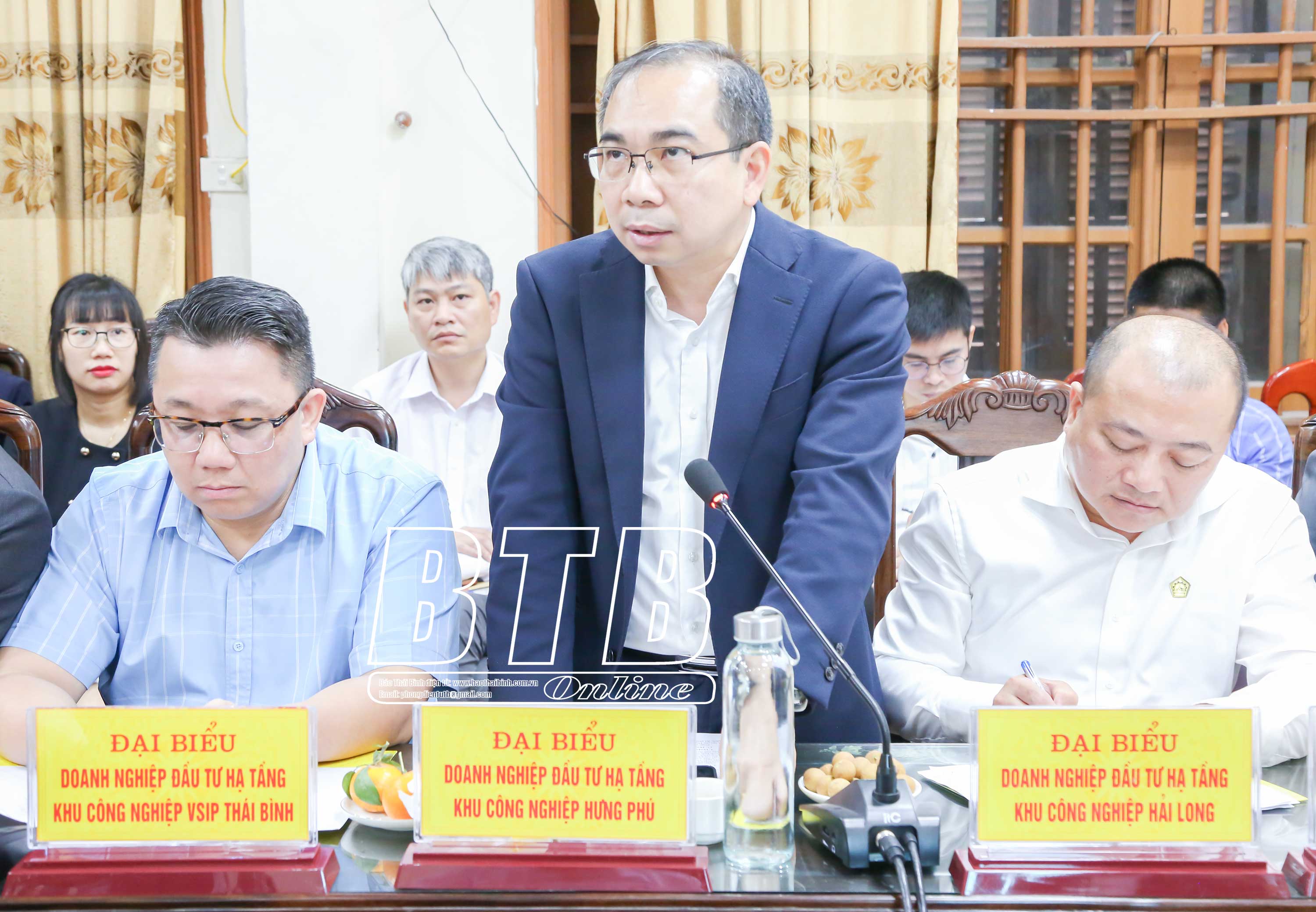 Đại diện các doanh nghiệp đầu tư hạ tầng khu công nghiệp phát biểu tại buổi làm việc.