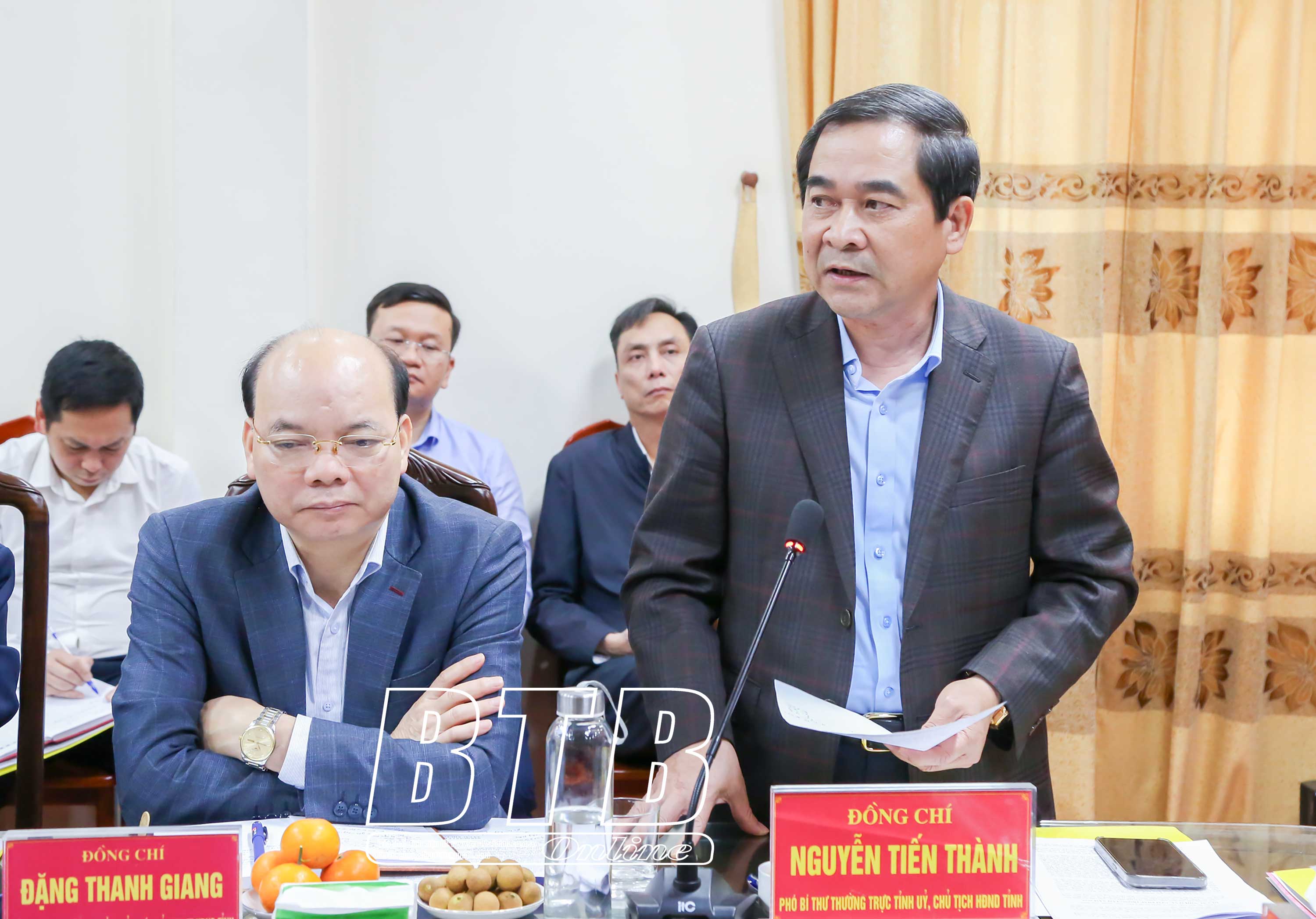 Đồng chí Nguyễn Tiến Thành, Phó Bí thư thường trực Tỉnh ủy, Chủ tịch HĐND tỉnh phát biểu tại buổi làm việc.