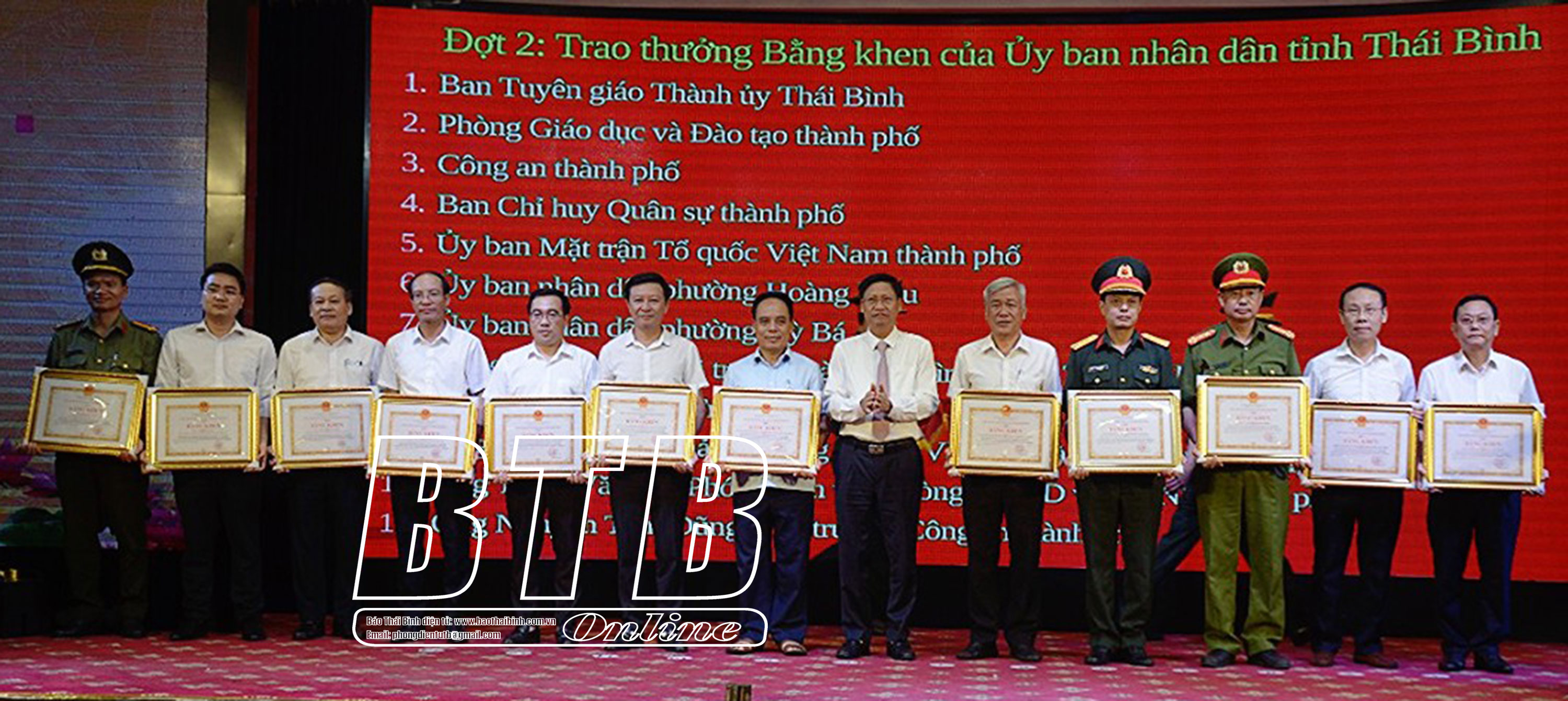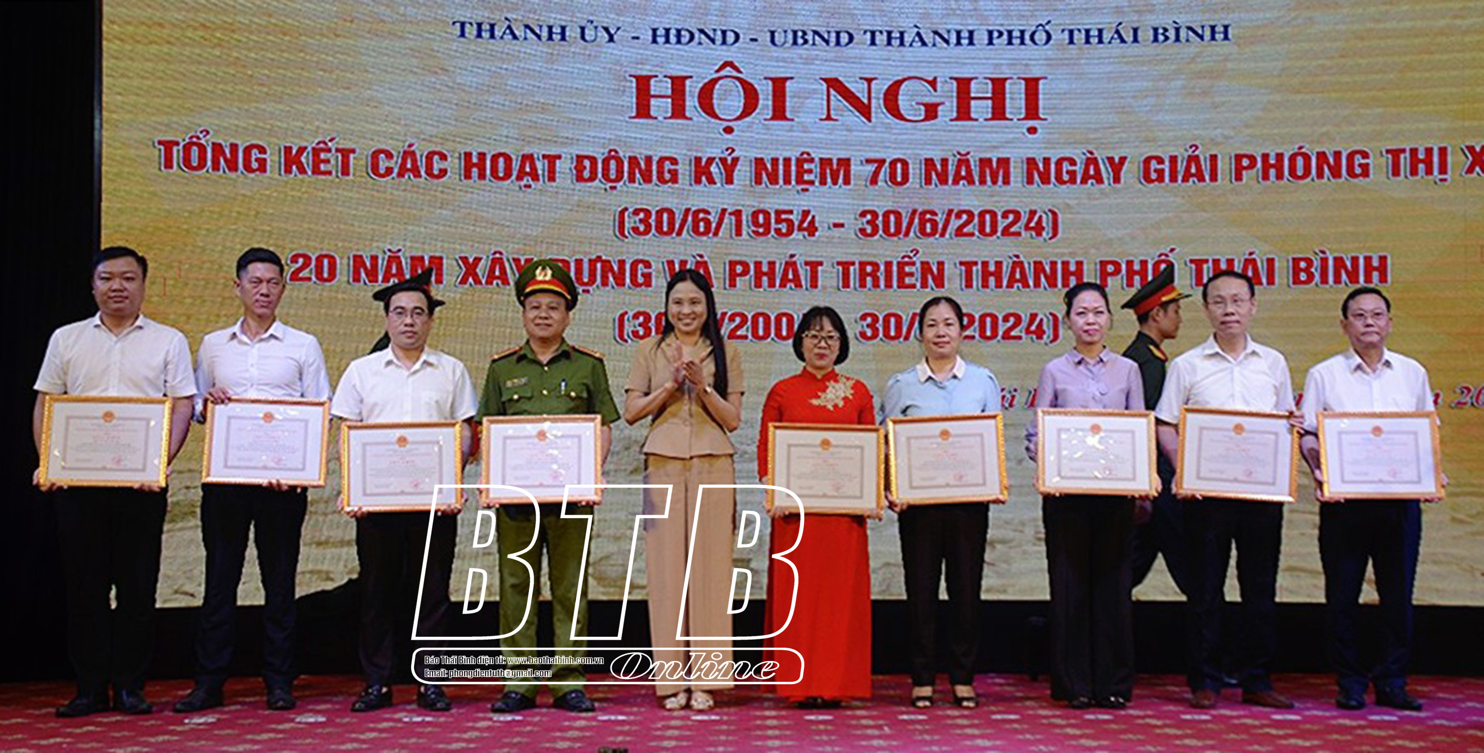 Khen thưởng 55 tập thể, cá nhân trong tổ chức thực hiện các hoạt động kỷ niệm 70 năm ngày giải phóng thị xã Thái Bình, 20 năm xây dựng và phát triển thành phố Thái Bình