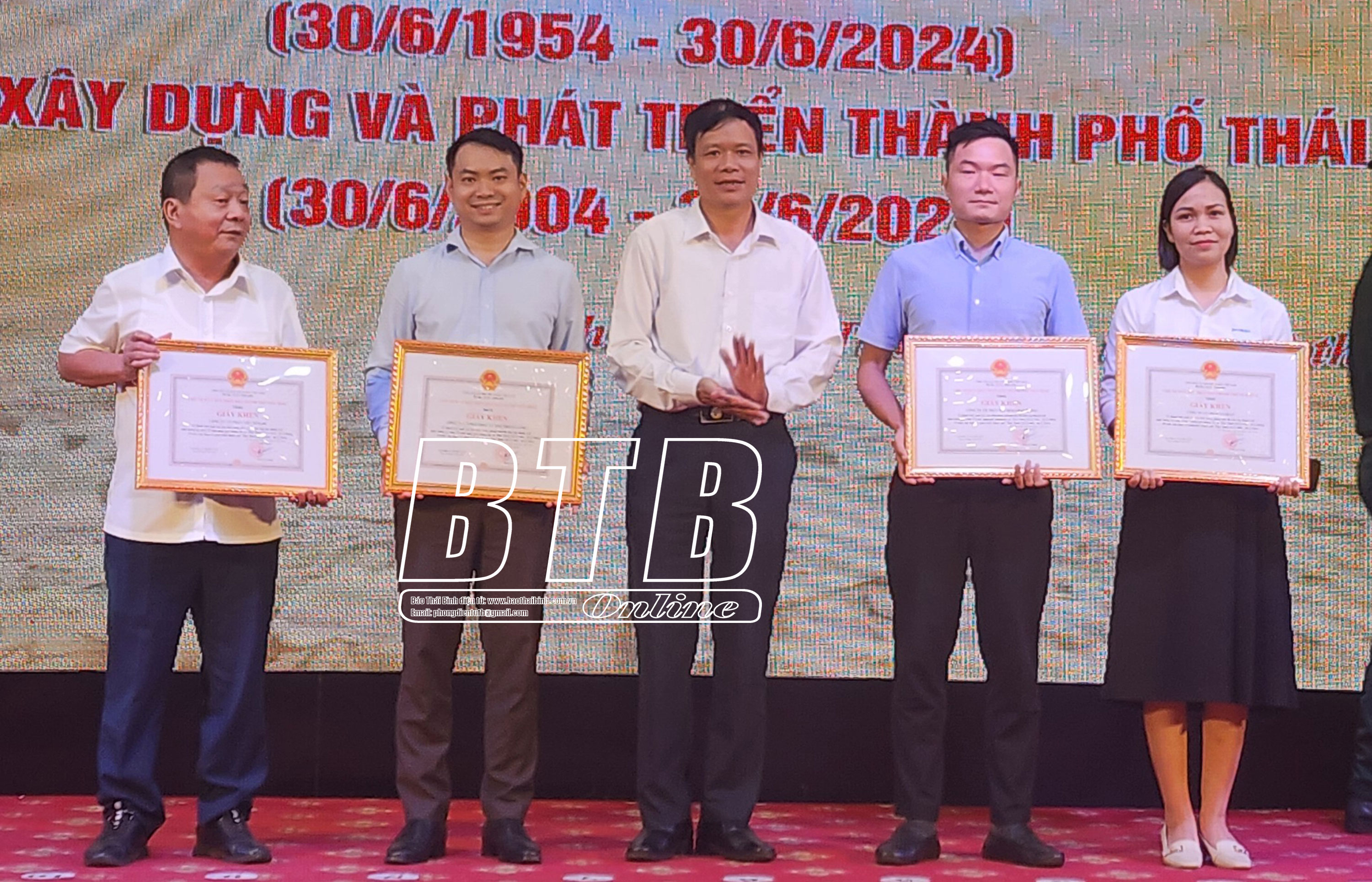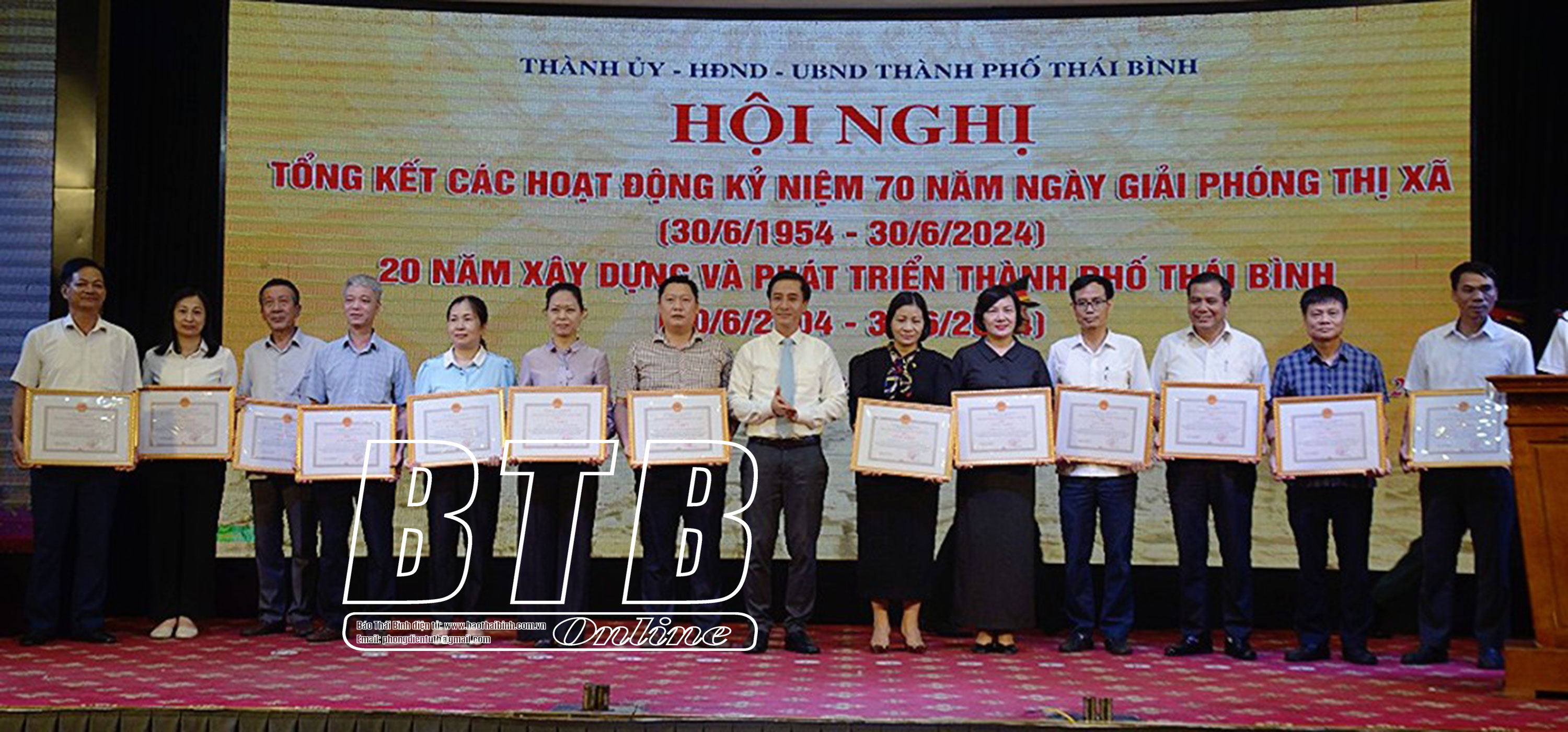 Nhân dịp này, Chủ tịch UBND tỉnh tặng bằng khen cho 19 tập thể, 5 cá nhân có thành tích xuất sắc trong tổ chức, thực hiện các hoạt động lễ kỷ niệm 70 năm ngày giải phóng thị xã Thái Bình, 20 năm xây dựng và phát triển thành phố Thái Bình; UBND thành phố tặng giấy khen cho 22 tập thể, 9 cá nhân có thành tích xuất sắc tiêu biểu trong phong trào thi đua lập thành tích chào mừng kỷ niệm 70 năm ngày giải phóng thị xã Thái Bình, 20 năm xây dựng và phát triển thành phố Thái Bình.