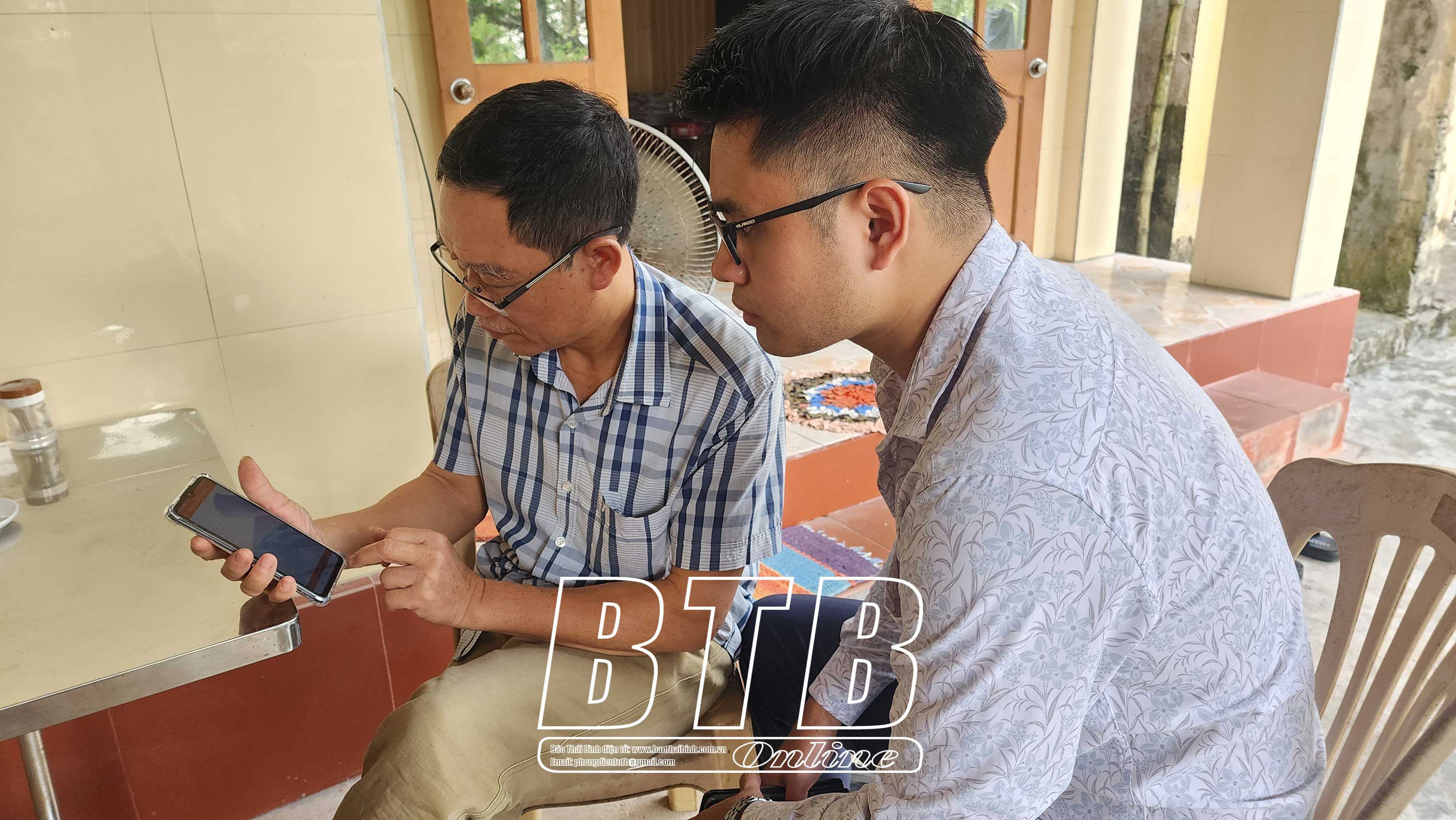 Đảng viên mới Tô Việt Cường được hướng dẫn sử dụng sổ tay đảng viên điện tử.