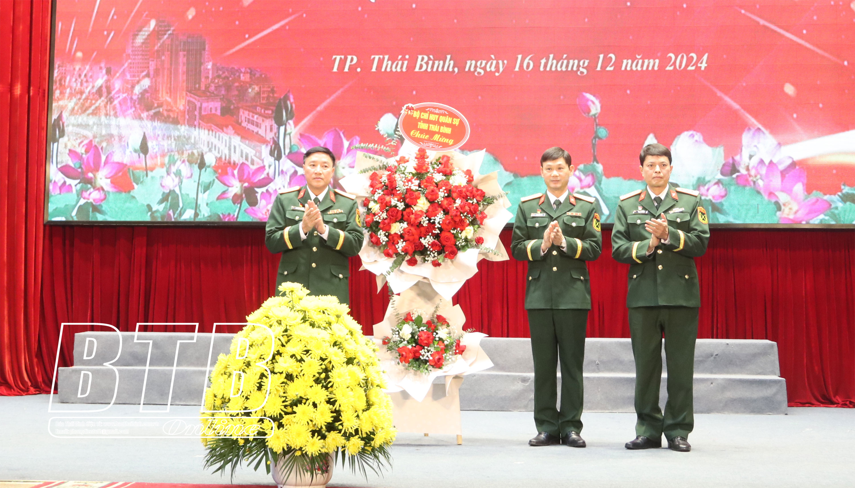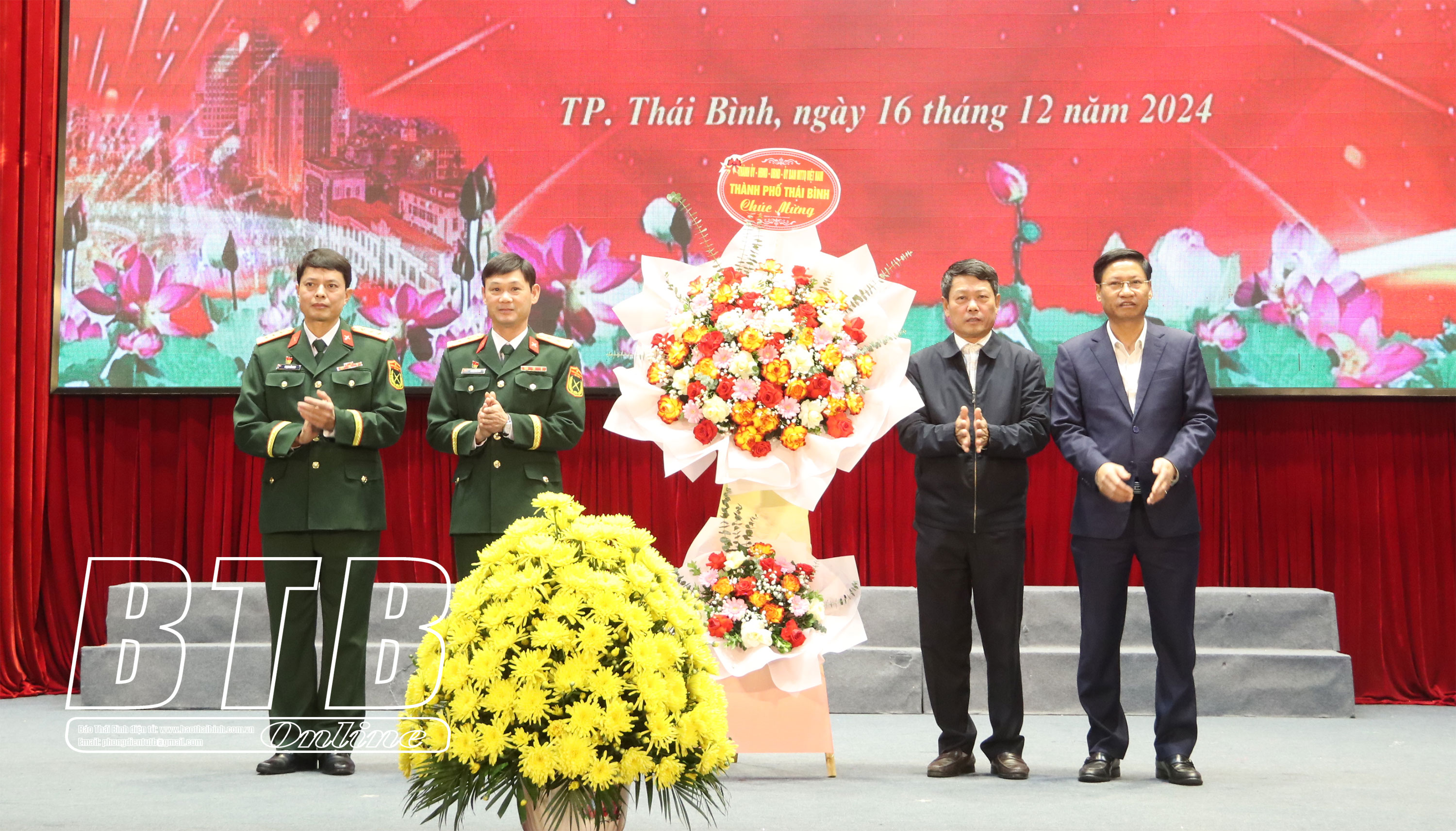 Lãnh đạo thành phố Thái Bình tặng hoa chúc mừng tại buổi gặp mặt.