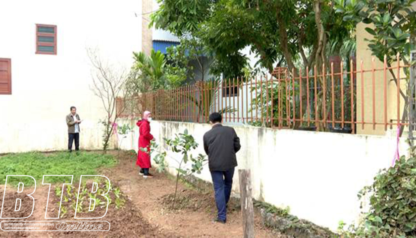 Lực lượng cưỡng chế thực hiện đo đạc kiểm đếm diện tích đất bị thu hồi của 1 hộ gia đình tại thôn Gia Lễ, xã Đông Mỹ.