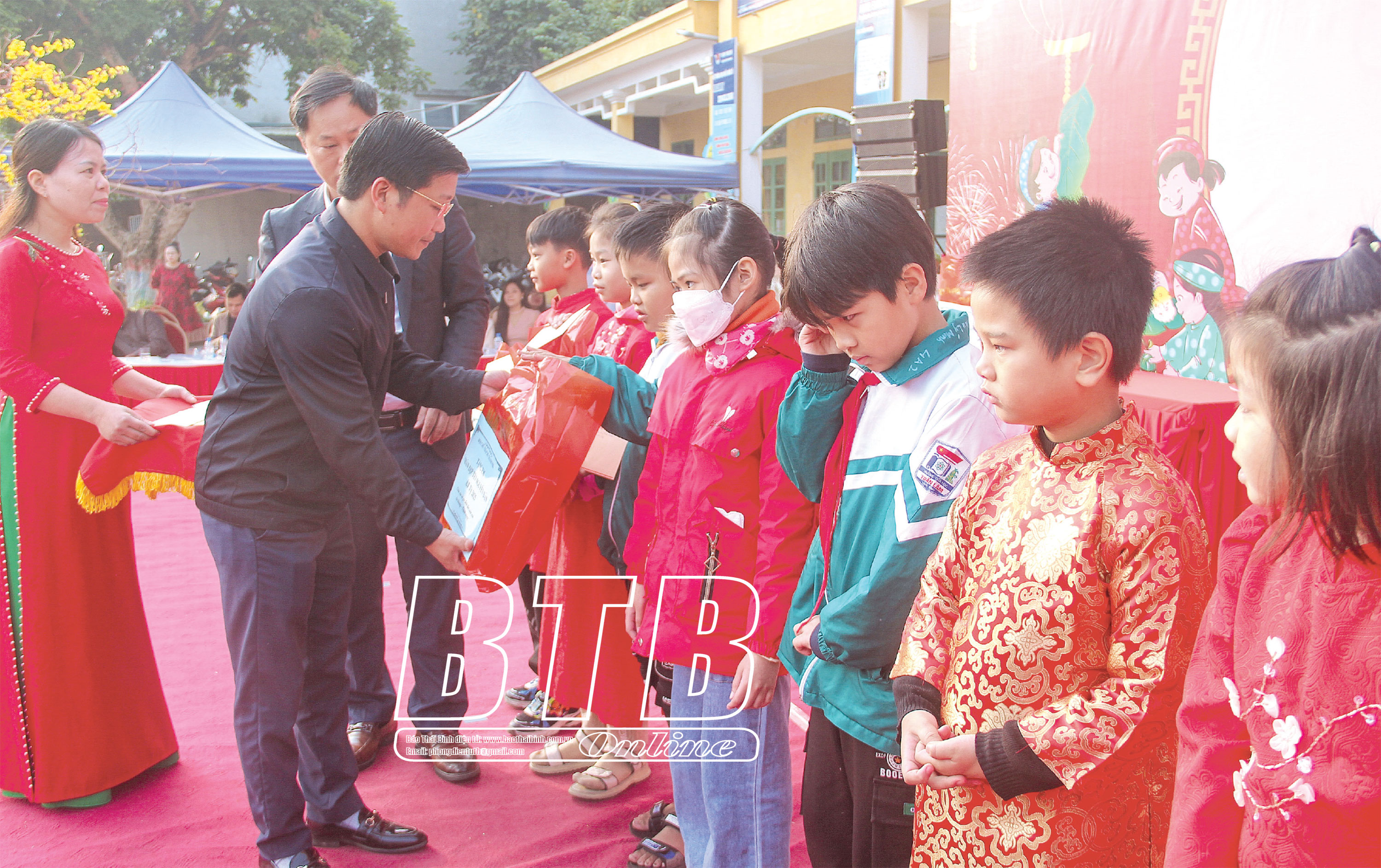 Trao quà tết cho học sinh có hoàn cảnh khó khăn tại Trường Tiểu học Trần Lãm (thành phố Thái Bình).