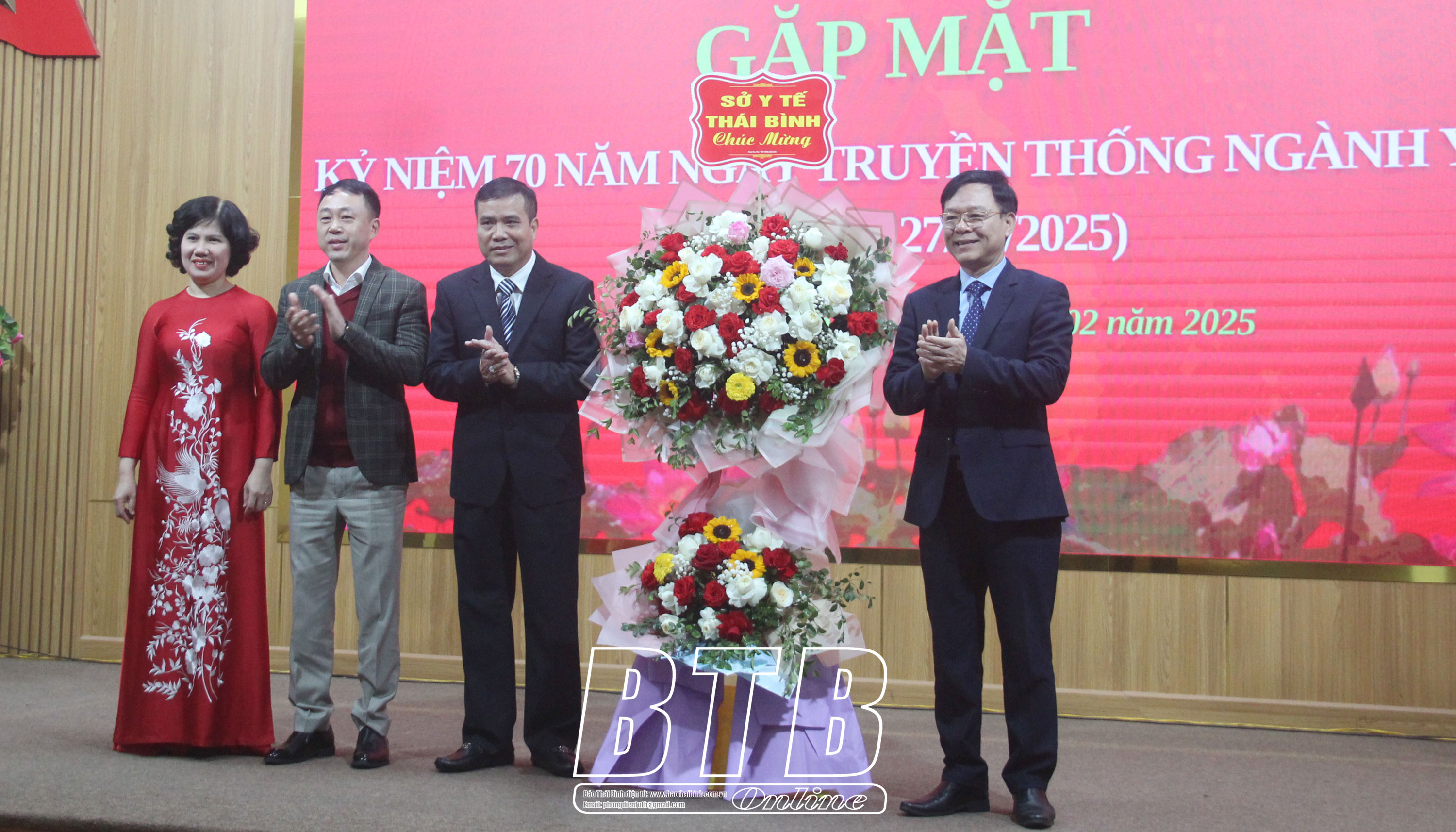 Lãnh đạo thành phố Thái Bình tặng hoa chúc mừng.