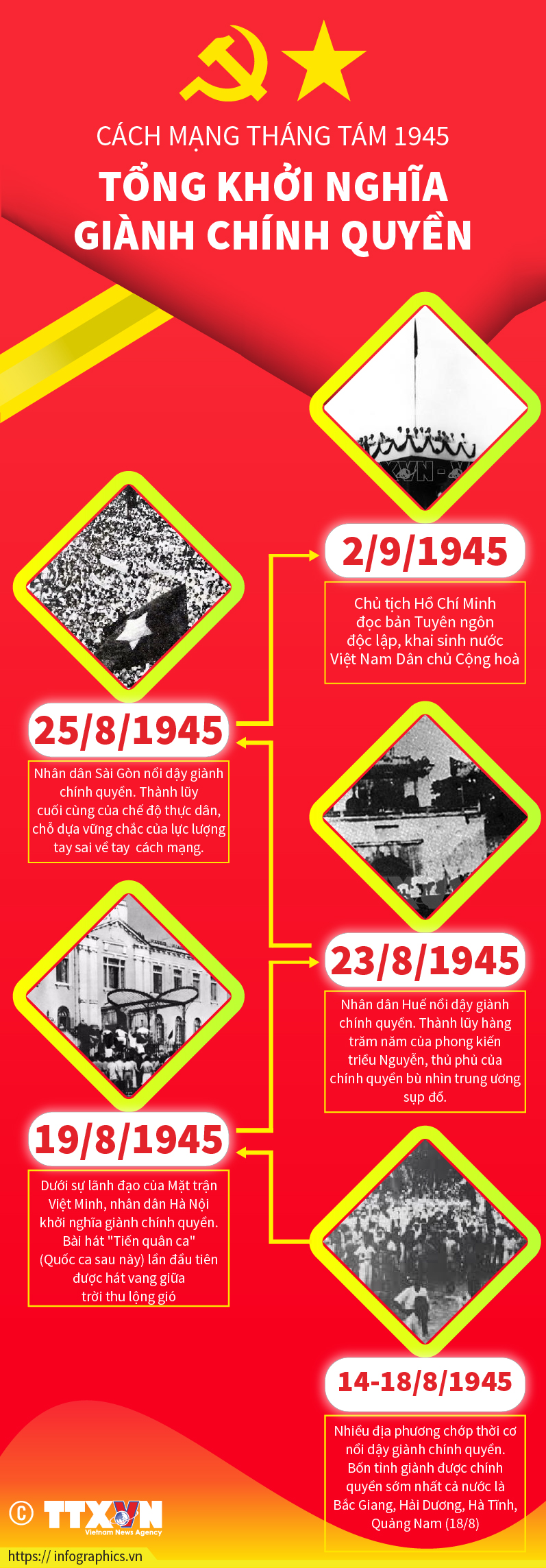 Trong lịch sử dựng nước và giữ nước của dân tộc ta, Cách mạng Tháng Tám là một trong những bước ngoặt vĩ đại của cách mạng Việt Nam. Dưới sự lãnh đạo của Đảng, nhân dân cả nước nhất tề đứng lên tạo thành cơn bão táp cách mạng lật nhào ách thống trị tàn bạo của phát xít Nhật, giành lại quyền độc lập cho dân tộc. Trong vòng 2 tuần lễ, từ ngày 14 đến 28-8-1945, tất cả các tỉnh, thành phố trong cả nước đã giành được chính quyền.