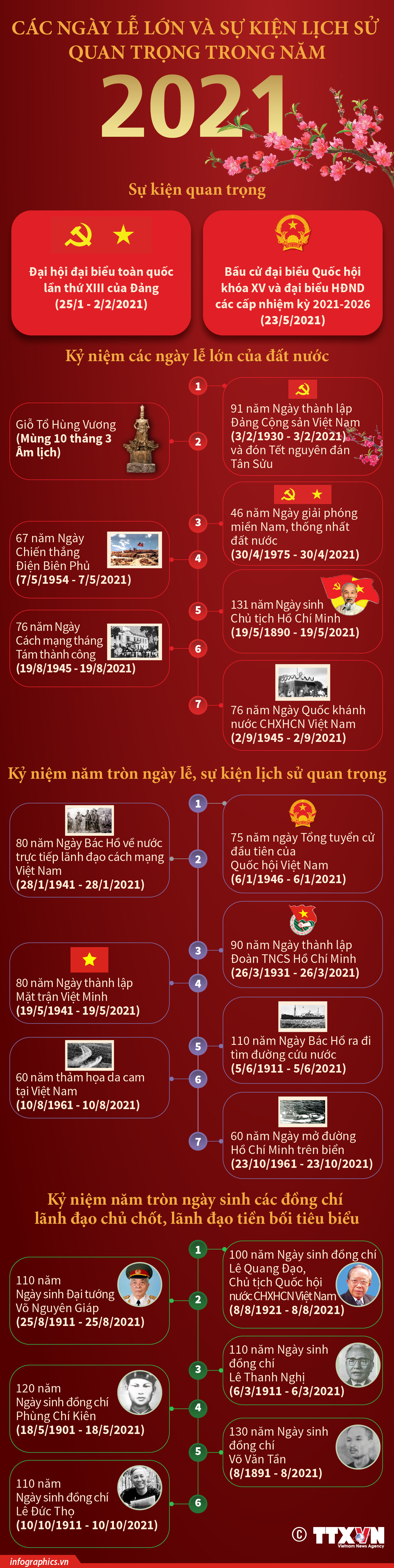 Các ngày lễ lớn và sự kiện lịch sử quan trọng trong năm 2021