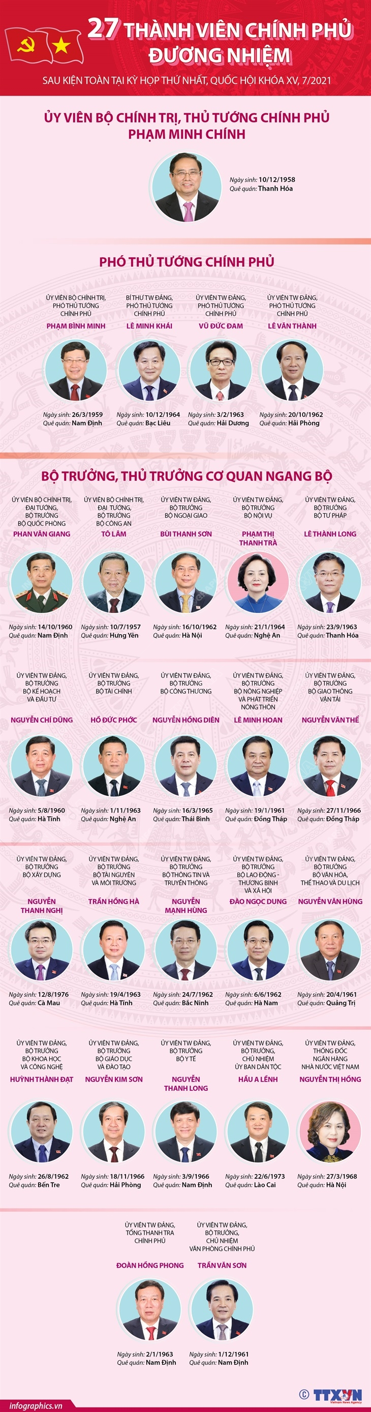 27 thành viên Chính phủ đương nhiệm (sau kiện toàn tại kỳ họp thứ nhất, Quốc hội khóa XV)