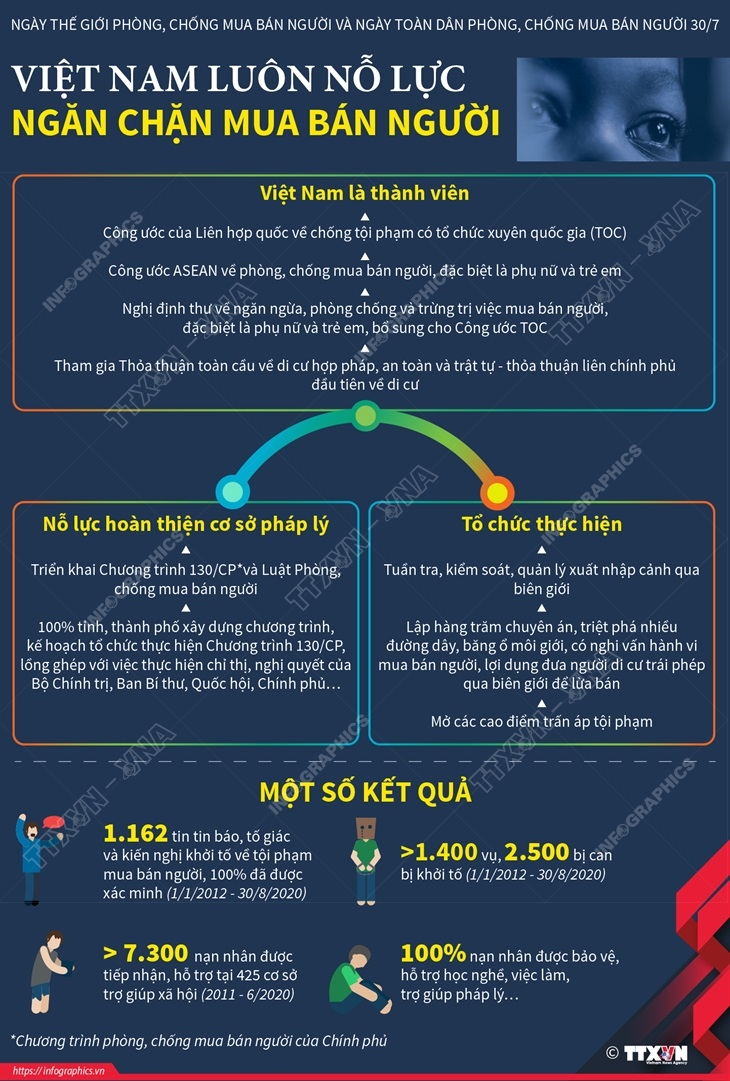 Mua bán người được LHQ xác định là một trong bốn loại tội phạm nguy hiểm nhất, được đưa vào Chương trình phòng, chống tội phạm toàn cầu và ngày 30/7 hằng năm được chọn là “Ngày thế giới phòng, chống mua bán người”. Tại Việt Nam, ngày 30/7 cũng được chọn làm “Ngày toàn dân phòng, chống mua bán người”. Thời gian qua, Việt Nam đã nỗ lực và đạt được nhiều kết quả trong công tác đấu tranh phòng chống mua bán người. Nhiều vụ án đã được đưa ra xét xử đúng người, đúng tội, đúng pháp luật.