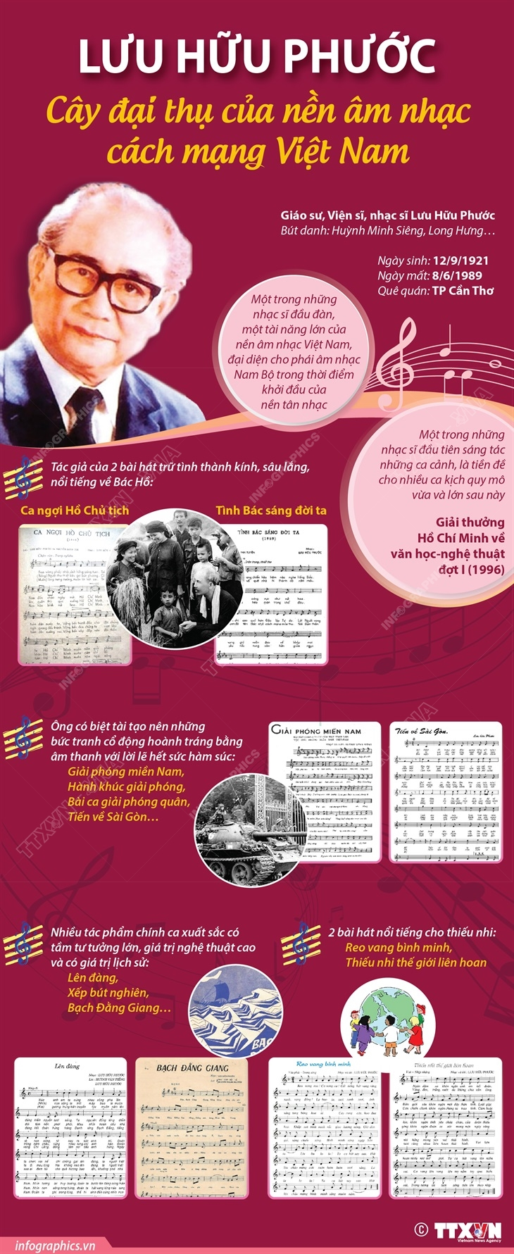 Lưu Hữu Phước là một nhạc sĩ lớn, có nhiều tác phẩm gắn với những sự kiện trọng đại của dân tộc. Với nhạc sĩ, Tổ quốc, lịch sử thấm đượm trong hầu hết các sáng tác âm nhạc. Ông sinh ngày 12/9/1921, cách đây tròn 100 năm.