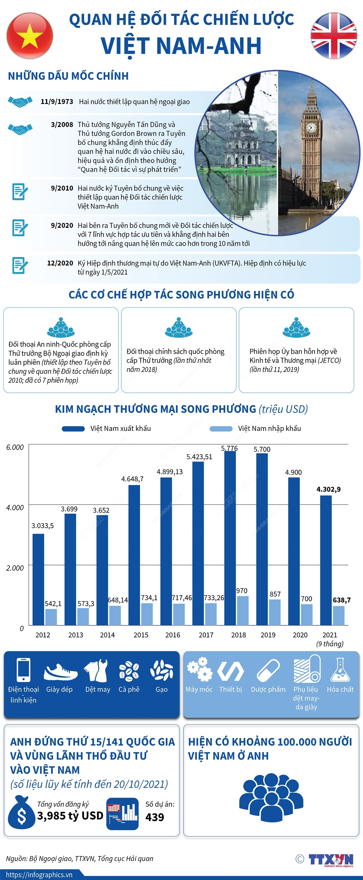 Nhận lời mời của Thủ tướng Vương quốc Anh Boris Johnson và Thủ tướng Cộng hòa Pháp Jean Castex, Thủ tướng Chính phủ Phạm Minh Chính sẽ dự Hội nghị lần thứ 26 các Bên tham gia Công ước khung của Liên hợp quốc về Biến đối khí hậu (COP26), thăm làm việc tại Vương quốc Anh và thăm chính thức Cộng hòa Pháp từ ngày 31/10 - 5/11/2021. Trong những năm qua, quan hệ Đối tác chiến lược giữa Việt Nam và Vương quốc Anh phát triển tốt đẹp trên tất cả các lĩnh vực, hiện đang ở trong giai đoạn tốt đẹp nhất và vẫn còn nhiều tiềm năng để phát triển.