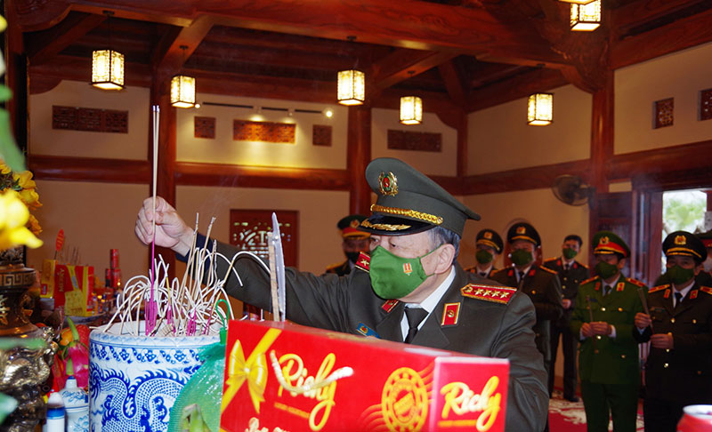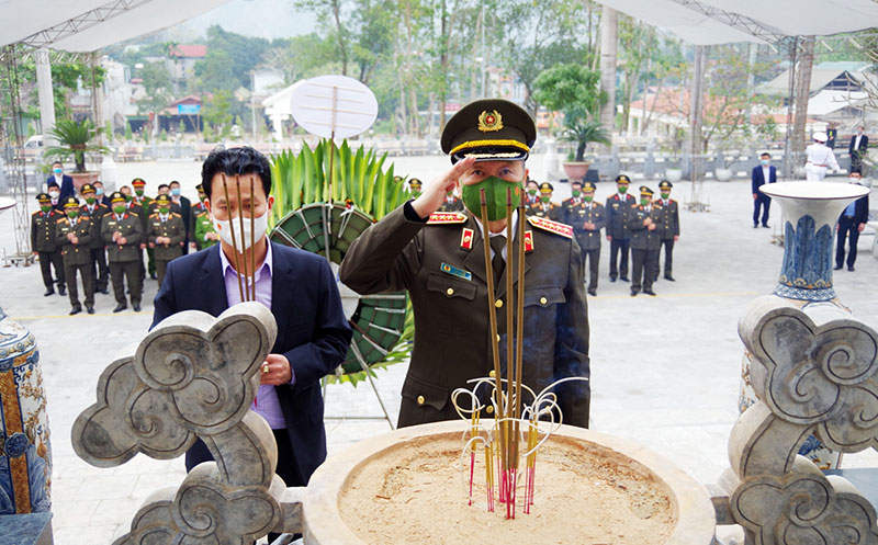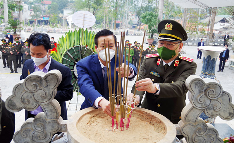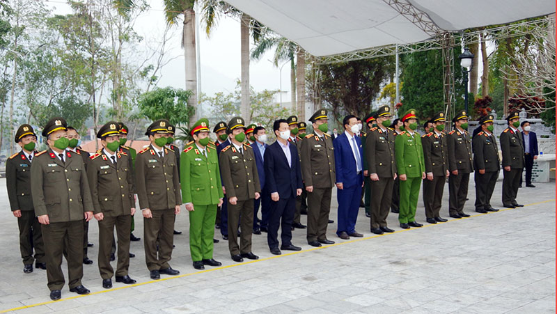 Bộ trưởng Tô Lâm cùng Đoàn công tác dâng hương, dâng hoa tại Nghĩa trang liệt sỹ quốc gia huyện Vị Xuyên.