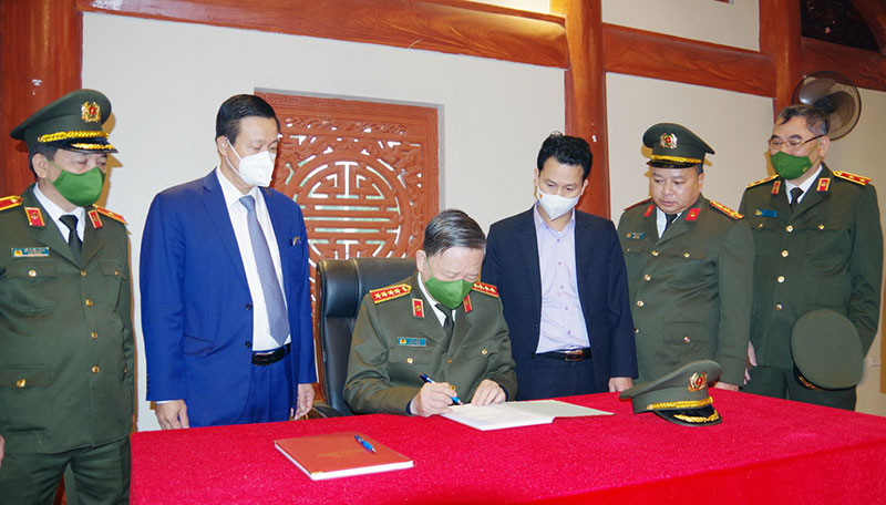Bộ trưởng Tô Lâm ghi sổ lưu bút tri ân các Anh hùng Liệt sĩ tại Nghĩa trang Liệt sĩ Quốc gia Vị Xuyên.