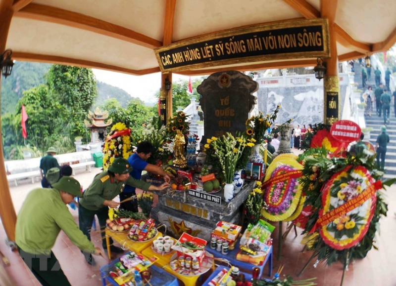 Dâng hương tưởng niệm các anh hùng liệt sỹ tại Nghĩa trang Liệt sỹ Quốc gia Vị Xuyên nhân kỷ niệm 72 năm Ngày Thương binh Liệt sỹ. (Ảnh: Minh Tâm/TTXVN)
