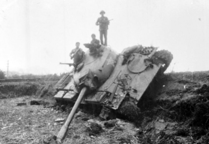 Xe tăng của quân xâm lược bị quân ta đánh gục ngay loạt đạn đầu tiên tại bản Sẩy, huyện Hòa An, tỉnh Cao Bằng. (Ảnh: Trần Mạnh Thường/TTXVN)
