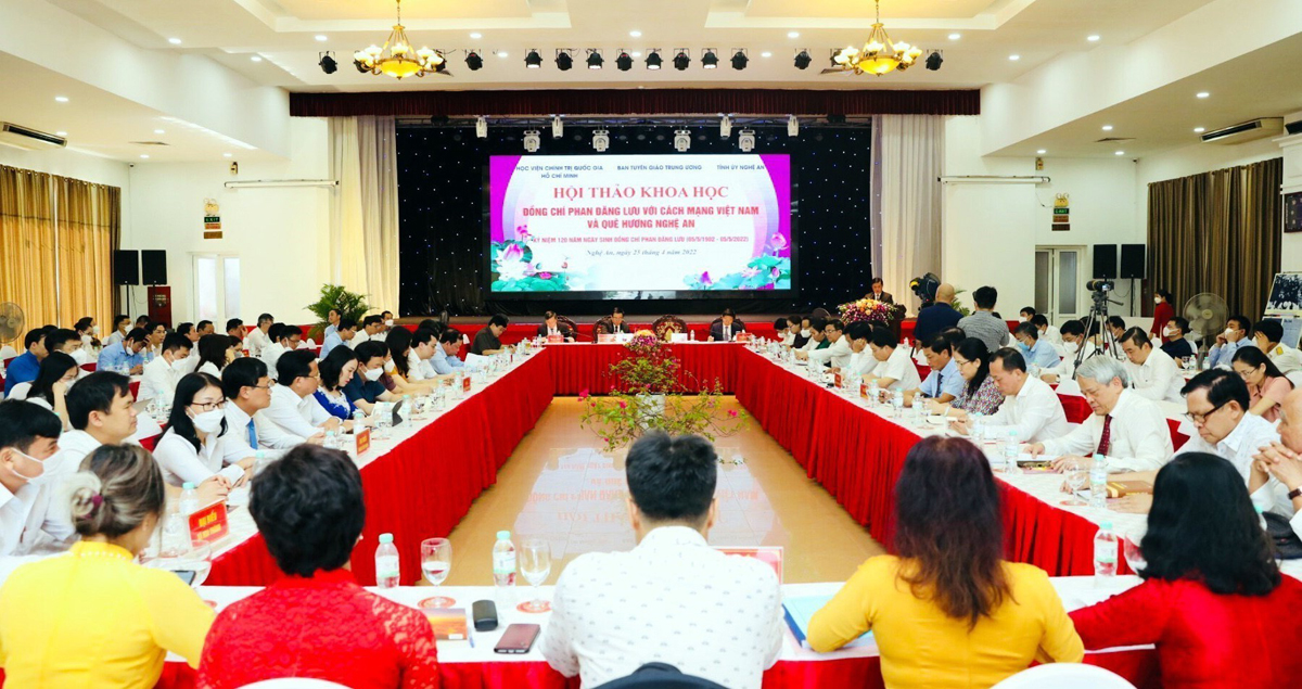 Hội thảo khoa học với chủ đề: “Đồng chí Phan Đăng Lưu với cách mạng Việt Nam và quê hương Nghệ An” do Học viên Chính trị quốc gia Hồ Chí Minh phối hợp với Ban Tuyên giáo Trung ương, Tỉnh ủy Nghệ An tổ chức_Ảnh: TTXVN