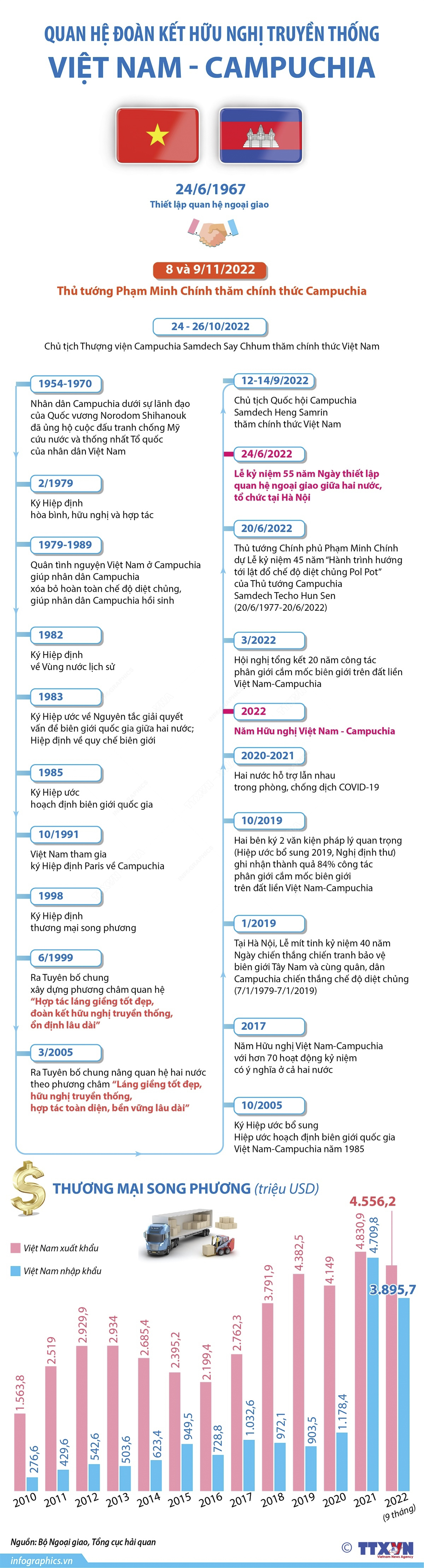 Nhận lời mời của Thủ tướng Chính phủ Vương quốc Campuchia, Chủ tịch ASEAN 2022 Samdech Techo Hun Sen, Thủ tướng Phạm Minh Chính thăm chính thức Campuchia ngày 8 và 9/11/2022 và dự Hội nghị Cấp cao ASEAN lần thứ 40-41 và các hội nghị liên quan từ ngày 10 - 13/11/2022.