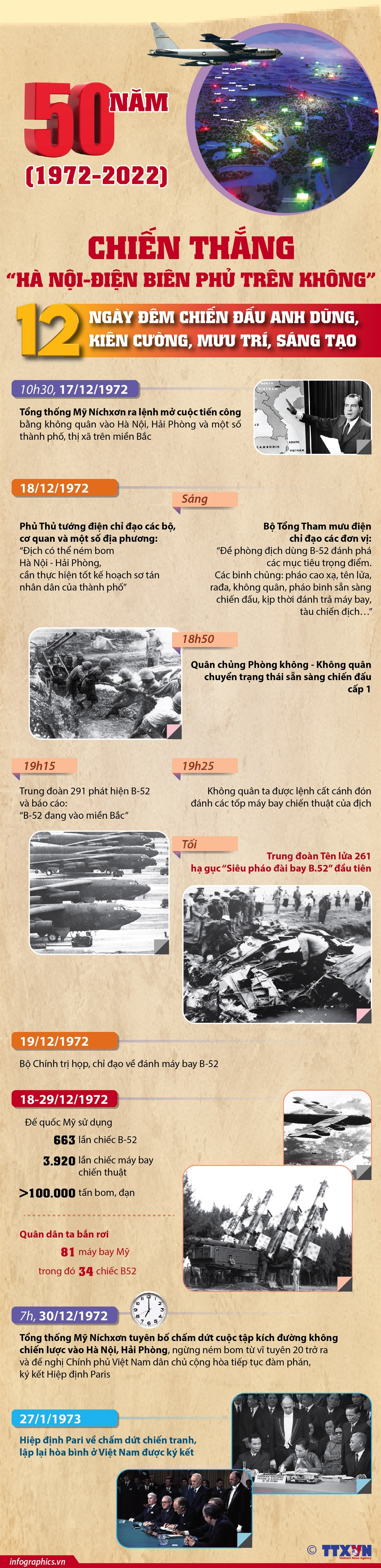 12 ngày đêm chiến đấu anh dũng, kiên cường, mưu trí, sáng tạo, quân và dân ta đã đánh bại hoàn toàn cuộc tập kích chiến lược đường không quy mô lớn chưa từng có của đế quốc Mỹ, làm nên Chiến thắng “Hà Nội - Điện Biên Phủ trên không”, buộc Mỹ phải ký Hiệp định Paris về chấm dứt chiến tranh, lập lại hòa bình ở Việt Nam.