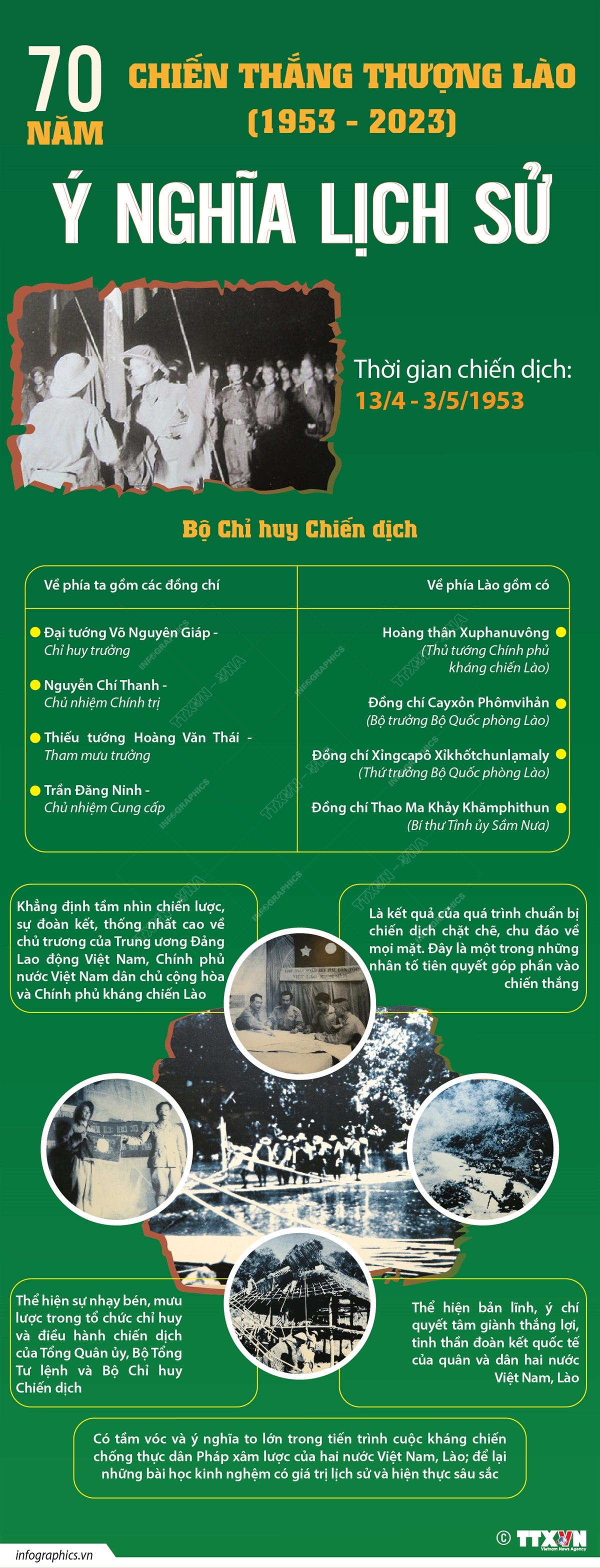 Cách đây 70 năm, thực hiện chủ trương của Đảng Lao động Việt Nam, Chính phủ nước Việt Nam dân chủ cộng hòa và Chính phủ Kháng chiến Lào, liên quân Việt Nam - Lào đã mở chiến dịch tiến công địch ở Thượng Lào (từ ngày 13/4 đến 3/5/1953) và giành được thắng lợi to lớn. Chiến thắng Thượng Lào năm 1953 trở thành một sự kiện quan trọng, đánh dấu bước phát triển mới, tiếp tục thế tiến công chiến lược, là mốc son trong tiến trình phát triển quan hệ liên minh đoàn kết chiến đấu Việt Nam - Lào chống thực dân Pháp xâm lược. 70 năm đã trôi qua nhưng tầm vóc, ý nghĩa và những bài học kinh nghiệm từ Chiến thắng Thượng Lào 1953 vẫn vẹn nguyên giá trị lịch sử và hiện thực sâu sắc.