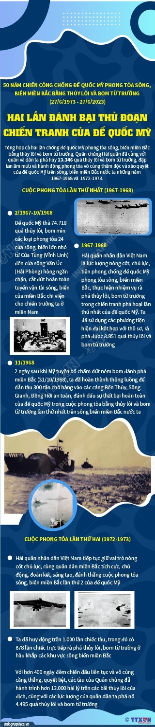 50 năm Chiến công chống đế quốc Mỹ phong tỏa sông, biển miền Bắc bằng thủy lôi và bom từ trường (27/6/1973 - 27/6/2023) Hai lần đánh bại thủ đoạn chiến tranh của đế quốc Mỹ