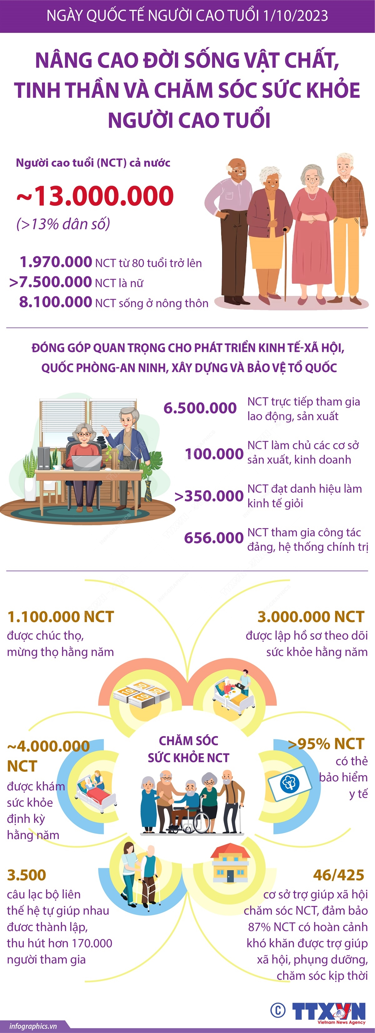 Với chủ trương, chính sách của Đảng và Nhà nước ta, từ nhiều năm nay, người cao tuổi của nước ta được chăm sóc ngày càng tốt hơn, đời sống vật chất, tinh thần của người cao tuổi ngày càng được cải thiện. Người cao tuổi tiếp tục đóng góp quan trọng cho phát triển kinh tế-xã hội, quốc phòng-an ninh, xây dựng và bảo vệ Tổ quốc.