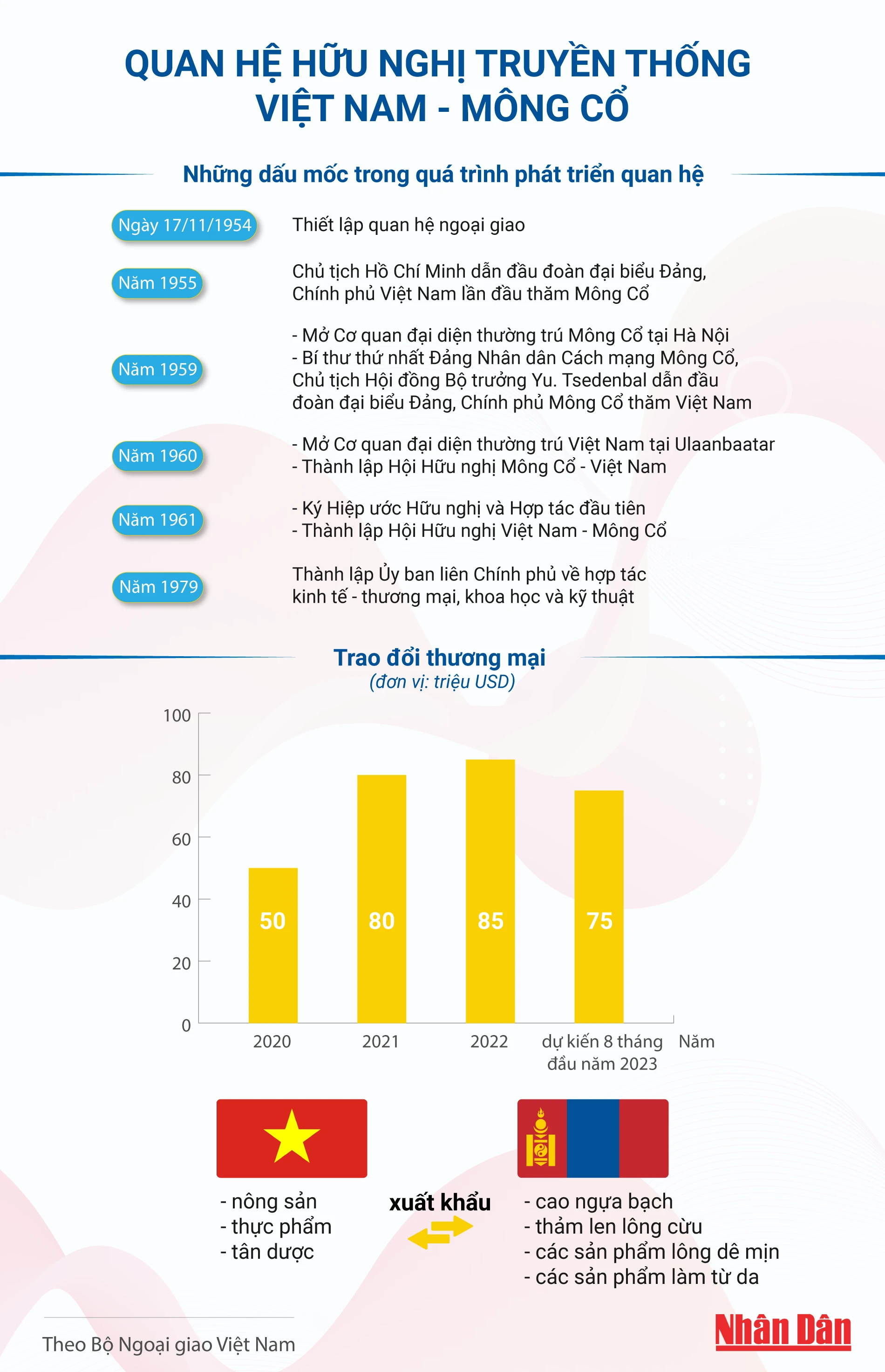 Trong gần 70 năm qua, Chính phủ và nhân dân hai nước Việt Nam và Mông Cổ đã không ngừng nỗ lực vun đắp cho sự phát triển của mối quan hệ hữu nghị truyền thống tốt đẹp.